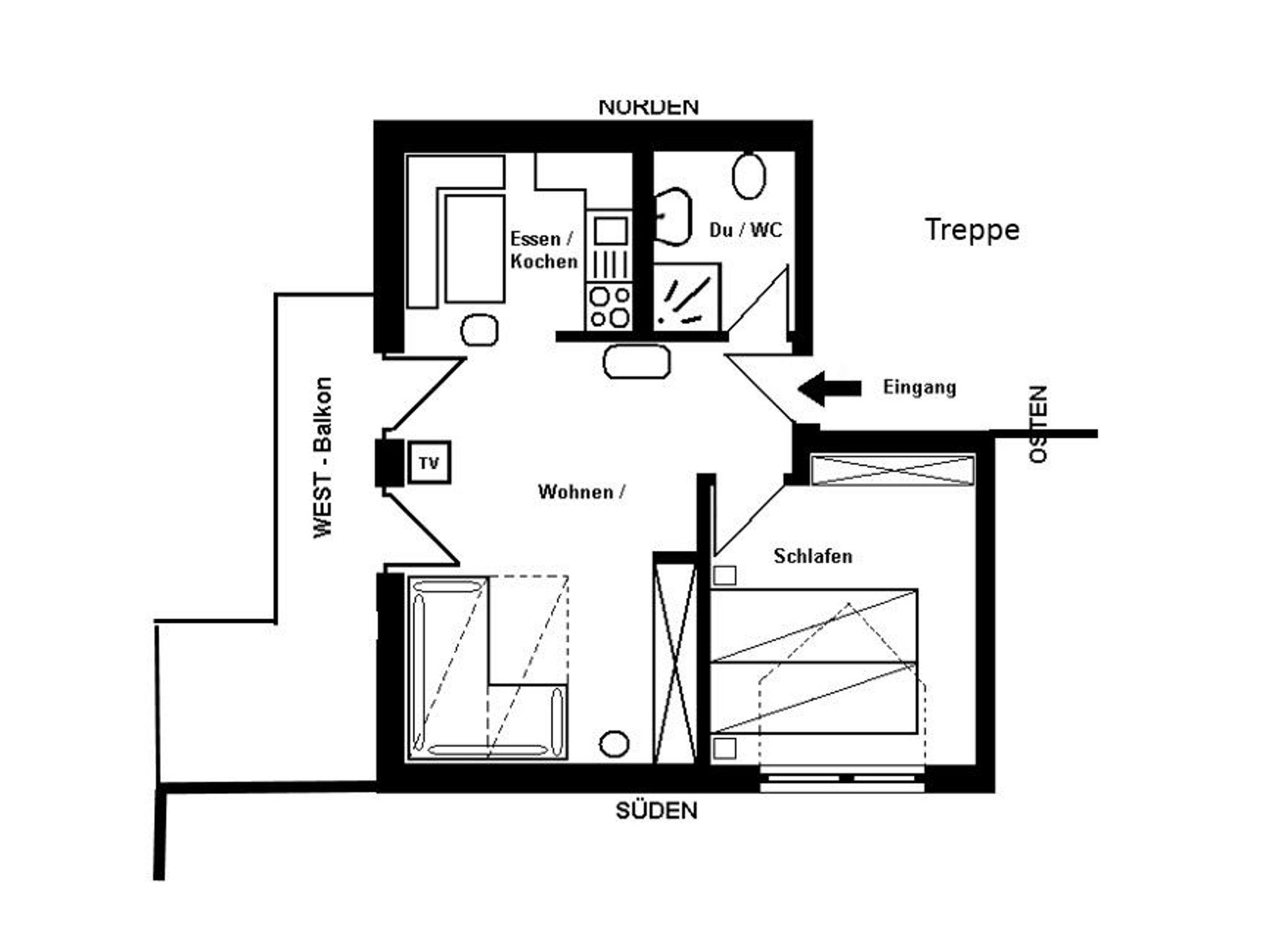 Atelierwohnung Aggenstein mit 1 Schlafzimmer, Wohn-Essraum, Kochzeile mit Geschirrspüler, Dusche/WC, Westbalkon mit Blick auf die Allgäuer Alpen und Schloss Neuschwanstein, Sat-TV, Stereoanlage, Telefon und Tresor.