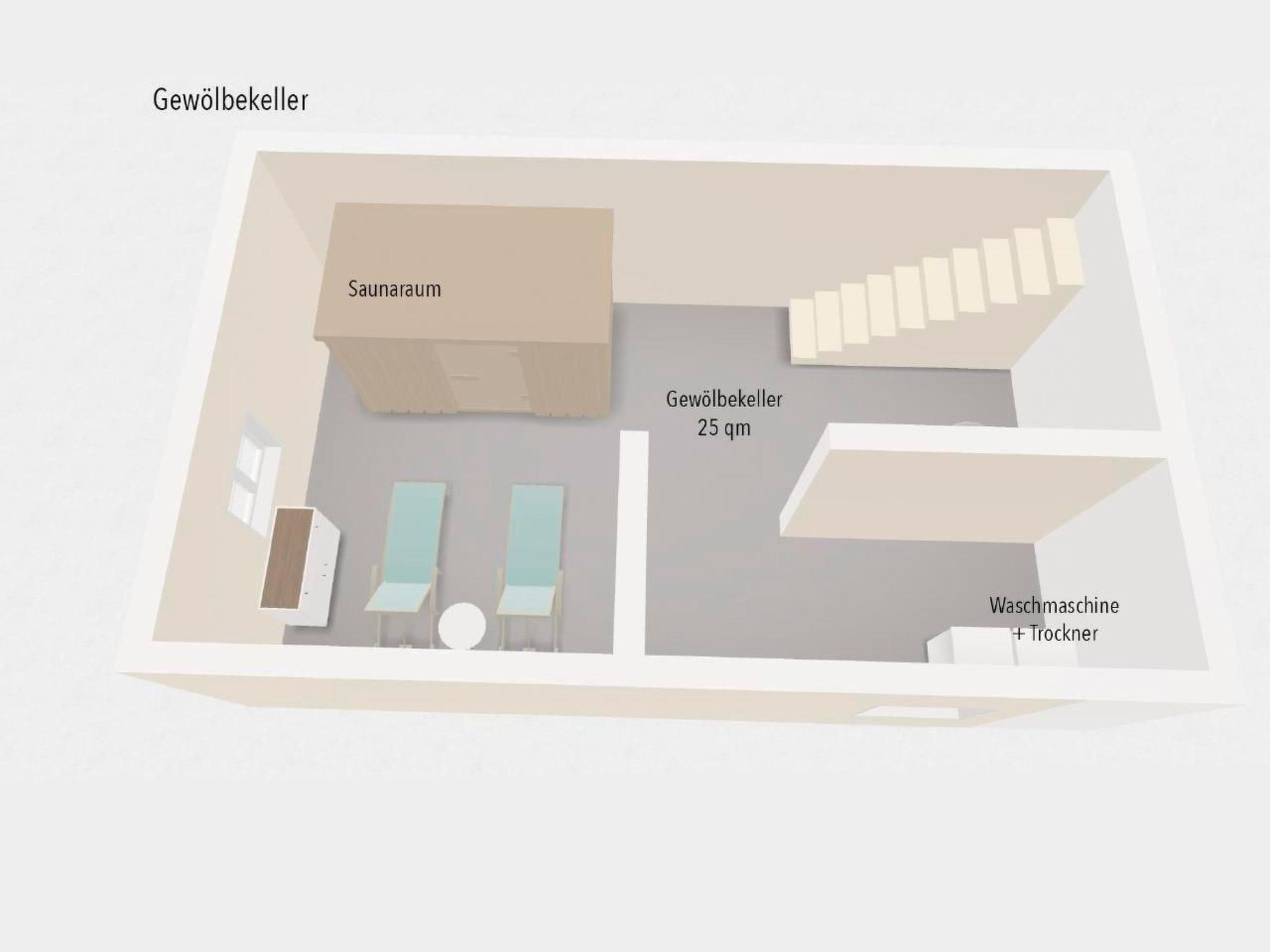 The cozy living room has a wood-burning stove, furthermore there are 3 bedrooms, an eat-in kitchen, two bathrooms with bathtub and a Finnish sauna with relaxation room in the natural stone vaulted cellar.