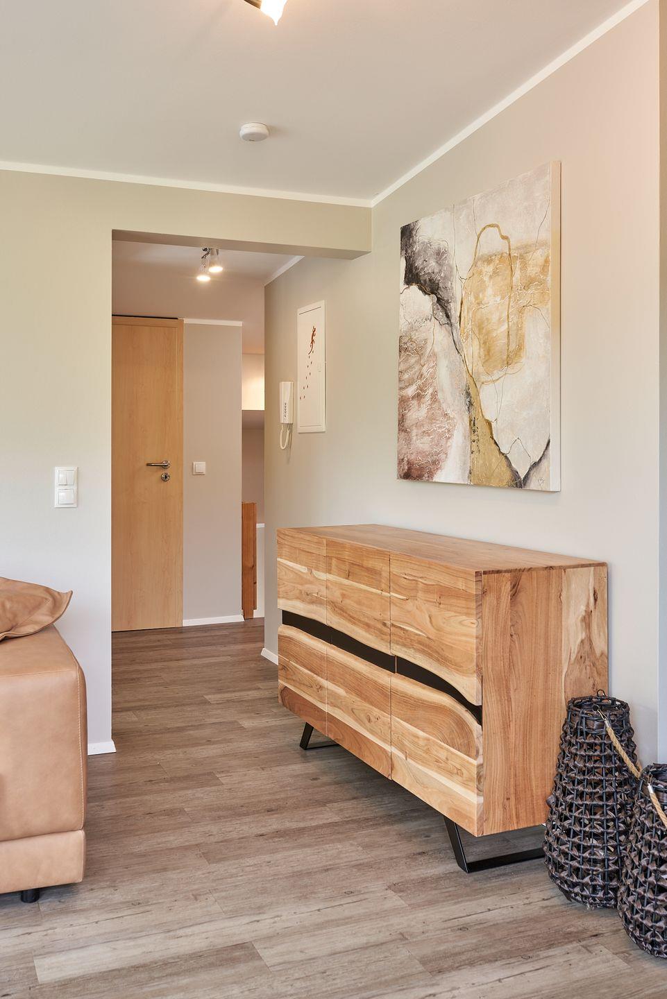 Vom Flur aus gelangt man in die beiden Schlafzimmer, das Badezimmer und einen Abstellraum.