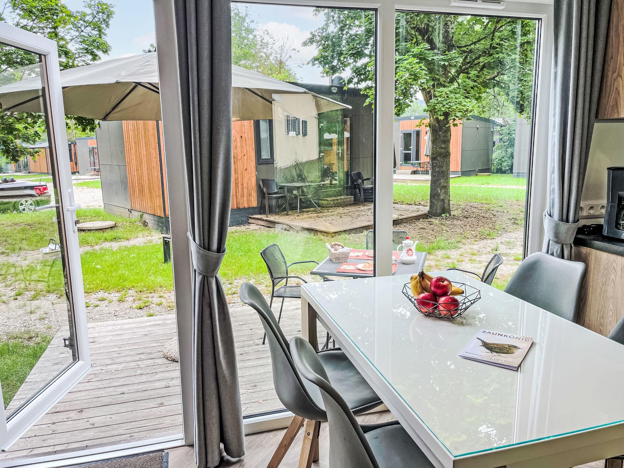 "Tiny Haus Zaunkönig", 3-room mobile home 32 m2. Cosy furnishings: living/sleeping room with (120 cm, length 170 cm), satellite TV. Exit to the terrace. 1 room with 1 french bed (140 cm, length 190 cm). 1 room with 2 beds (70 cm, length 190 cm). Open kitchen (4 ceramic glass hob hotplates, kettle, freezer, electric coffee machine). Shower, sep. WC. Electric heating. Small terrace. Terrace furniture. Parking at the house. Please note: non-smoking house.