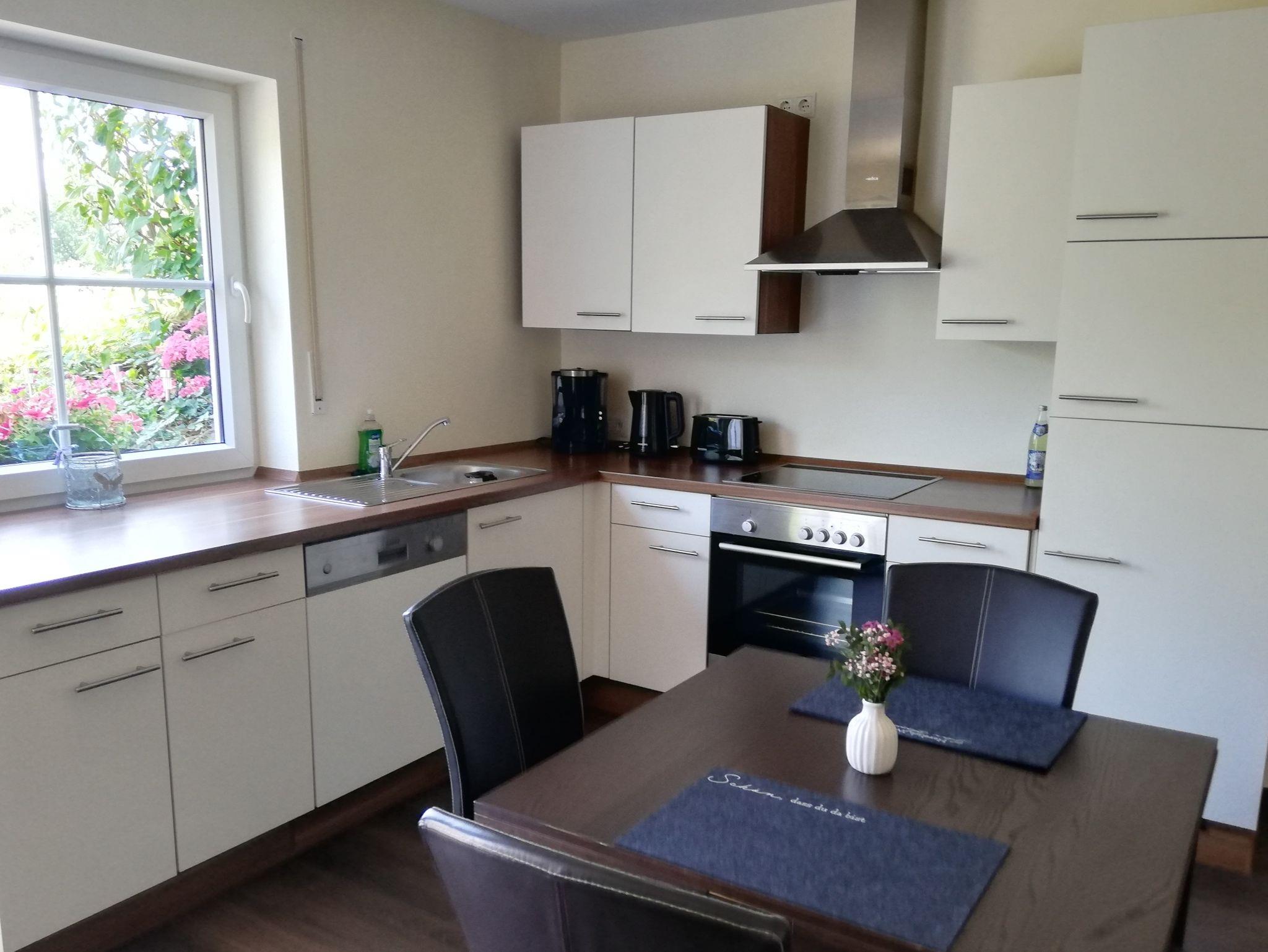 Die Ferienwohnung bietet auf 39 Quadratmetern Platz für bis zu 2 Personen. Der gemütliche Wohn- und Essbereich mit Couch lädt nach einem Tag voller schöner Ausflüge in der Umgebung zum Entspannen und Ausruhen ein. Die Wohnung ist ausgestattet mit einer hochwertigen Küche mit Geschirrspülmaschine, Kaffeemaschine, Toaster und Wasserkocher und allen Küchenutensilien, die man benötigt, um etwas Leckeres zu kochen. Des Weiteren ist ein Flachbildfernseher mit Sat-TV vorhanden, ein Radio und Internet. Außerdem gibt es ein Badezimmer mit Dusche und WC.