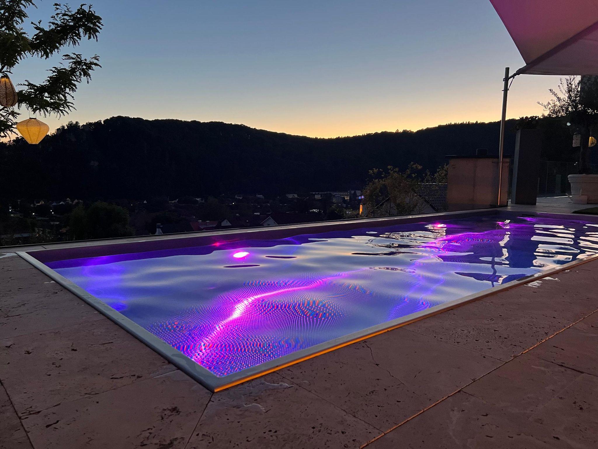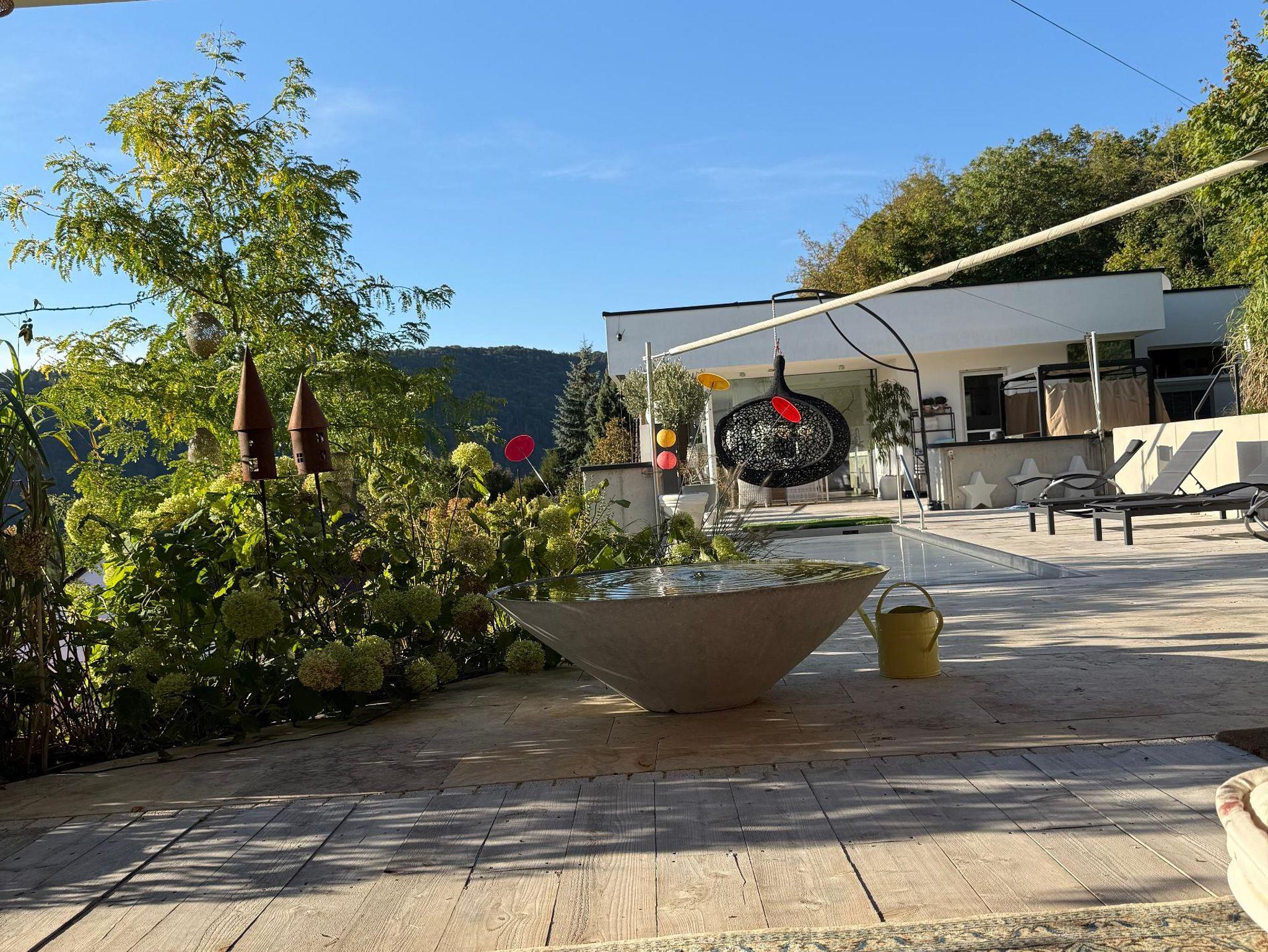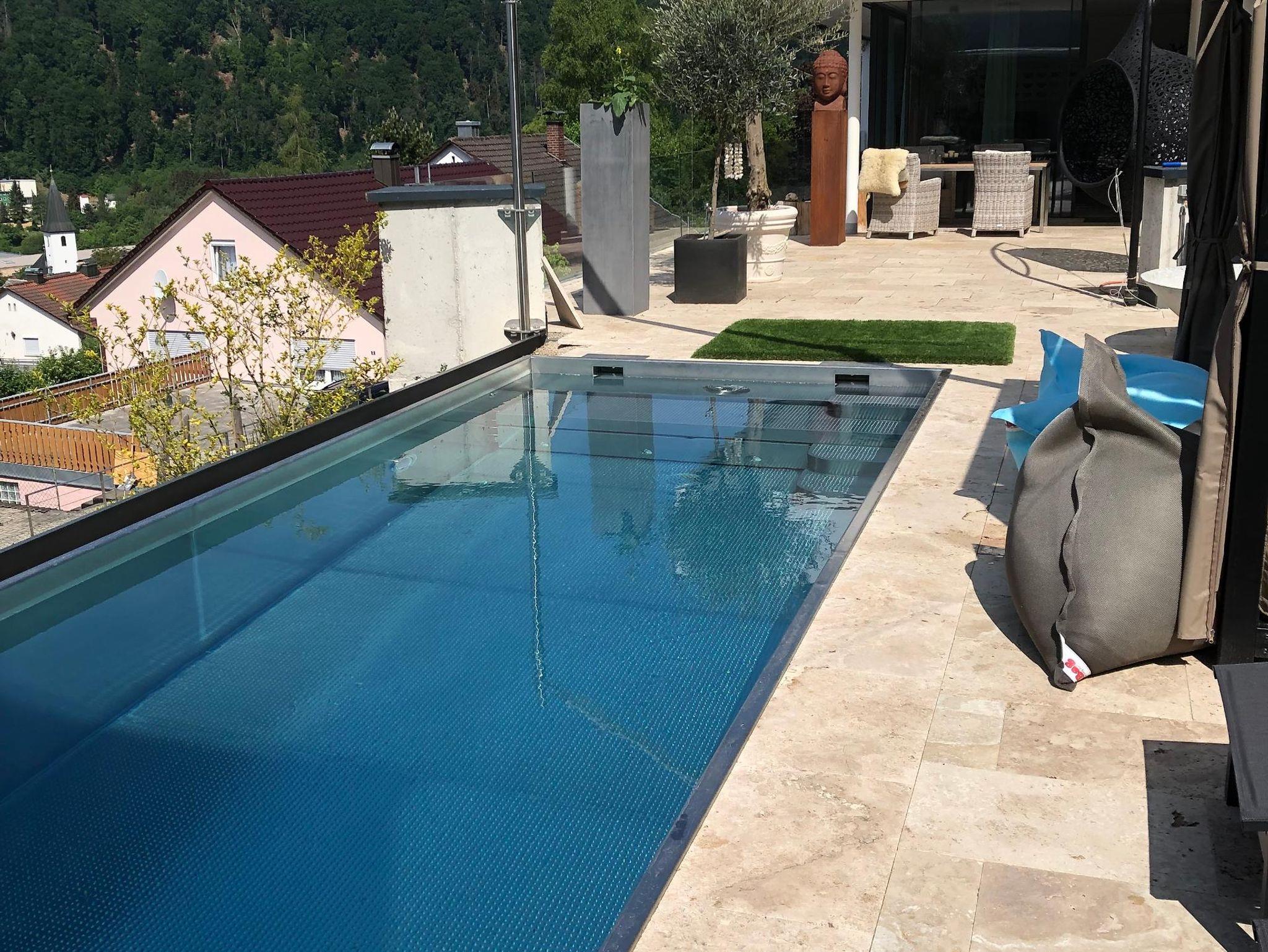 Die Anlage verfügt über einen Edelstahlpool, der allen Gästen des Ferienchalet Burgenblick zur Verfügung steht.