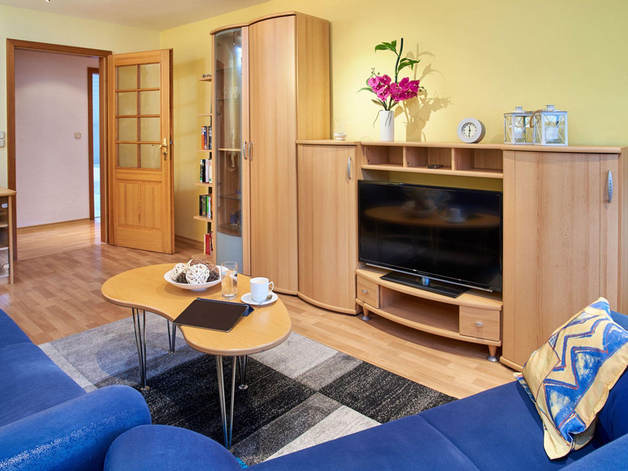 Geschmackvoll eingerichtete Ferienwohnung im Obergeschoss mit Wohnzimmer, Küche mit Essecke, 2 Schlafzimmer, Bad mit Dusche, Badewanne und WC. Ein großer Balkon und der schöne Garten laden zum Genießen ein.