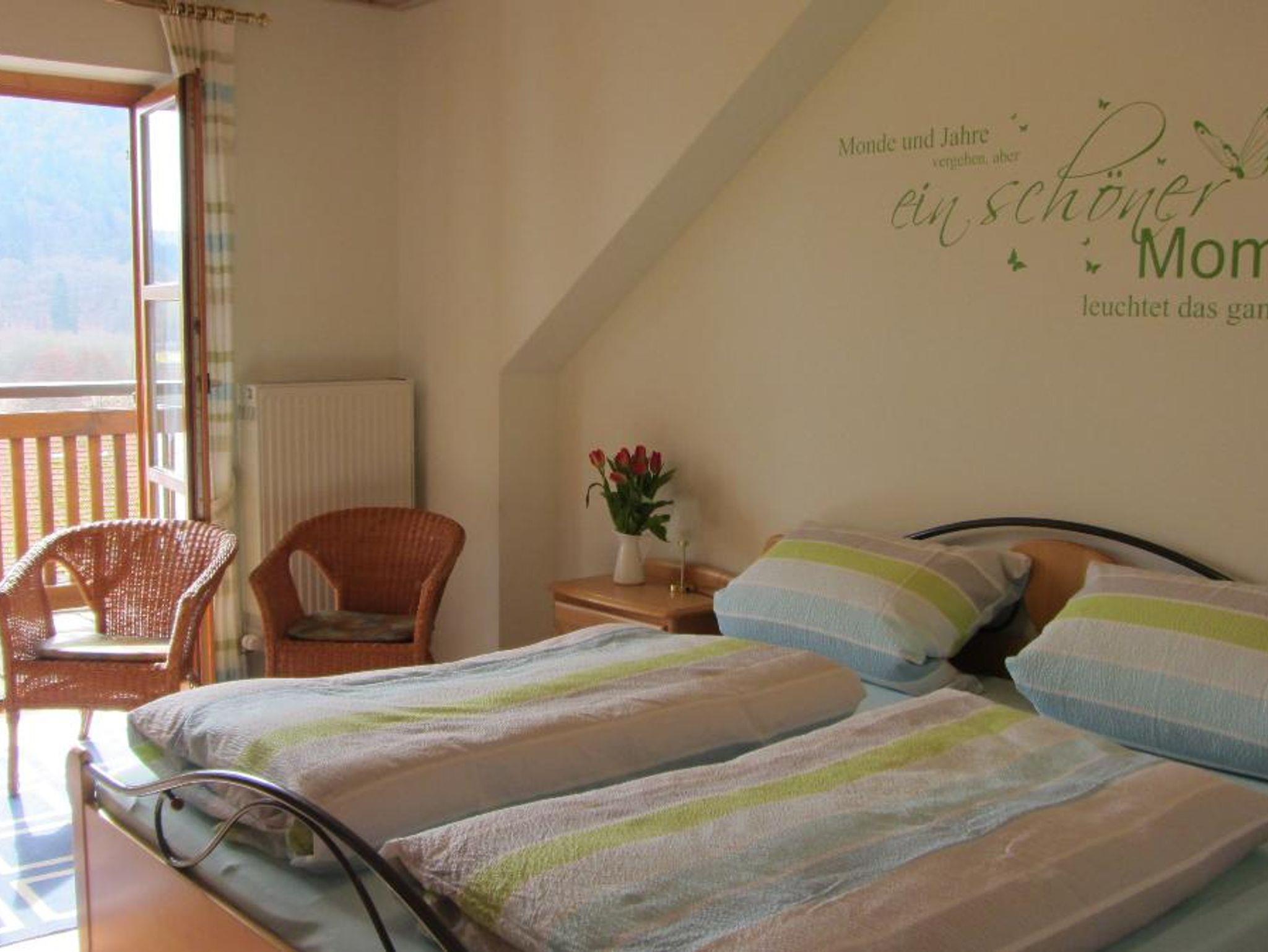 Der Balkon bietet Ihnen einen Blick über das malerische Tal mit seinen bewaldeten Hängen.