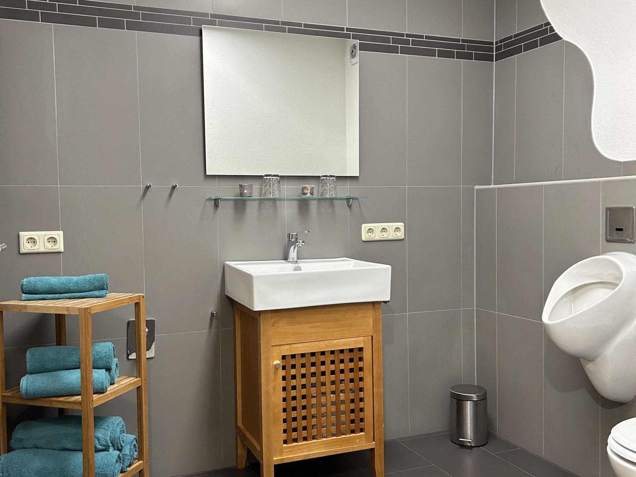 Unsere 90 Quadratmeter große Ferienwohnung mit eigenem Eingang ist hochwertig und geschmackvoll eingerichtet und verfügt über Satelliten-TV, Internet (WLAN) und Fußbodenheizung. Die Wohnung befindet sich im Erdgeschossbereich. PKW- und Fahrrad- Stellplätze stehen selbstverständlich zur Verfügung. Die Wohnung ist für 4 Personen (2 Schlafräume) vorgesehen, lässt sich jedoch durch unser bequemes Zustellbett auch für 5 Personen nutzen. Ein Schlafraum verfügt über ein Doppelbett und der zweite über ein Etagenbett. Im Bad befindet sich eine begehbare Dusche. Die Küche ist neuwertig und besitzt ein Ceranfeld, Geschirrspüler, Backofen und Kühl-Gefrierkombination. Der Wohnraum ist sehr offen und hell. Die Sitzgelegenheit zum Essen ähnelt einem Wintergarten und lädt ein hier Zeit zu verbringen bei einem gemeinsamen Frühstück. Familien mit Kindern sind bei uns sehr herzlich willkommen!