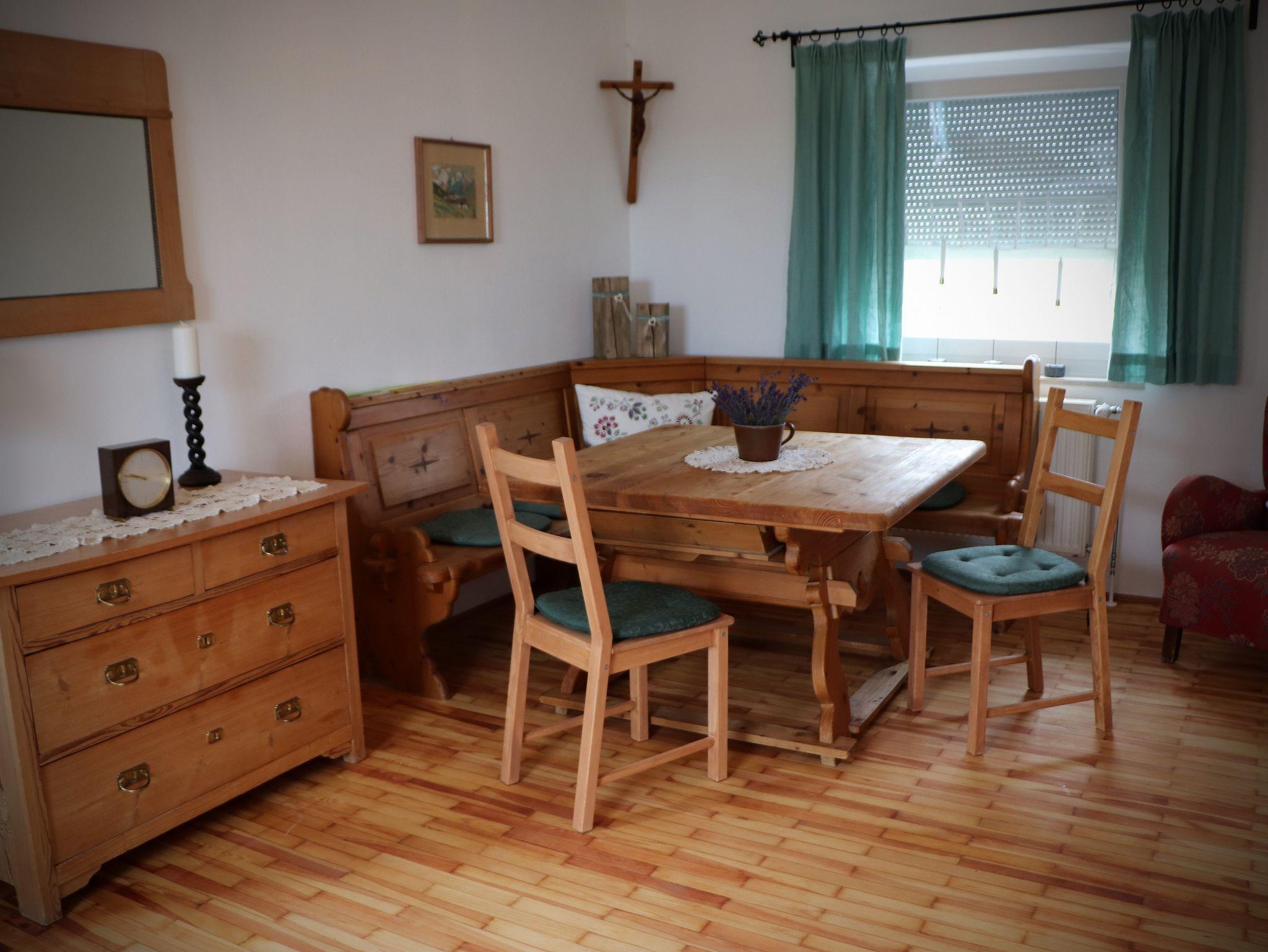Die gemütlichen Wohnräume liegen Parterre und sind über wenige Eingansstufen erreichbar. Das 80qm große Fuchsheisl verfügt über 2 Schlafzimmer mit Doppel- und Einzelbetten, eine Schlafcouch, ein Tageslichtbad mit Dusche und WC sowie eine gemütliche Essecke. In der separaten, voll eingerichteten Küche stehen Ihnen Toaster, Kaffeemaschine und Backofen zur Verfügung. Im Wohnbereich gibt es Satelliten-TV.