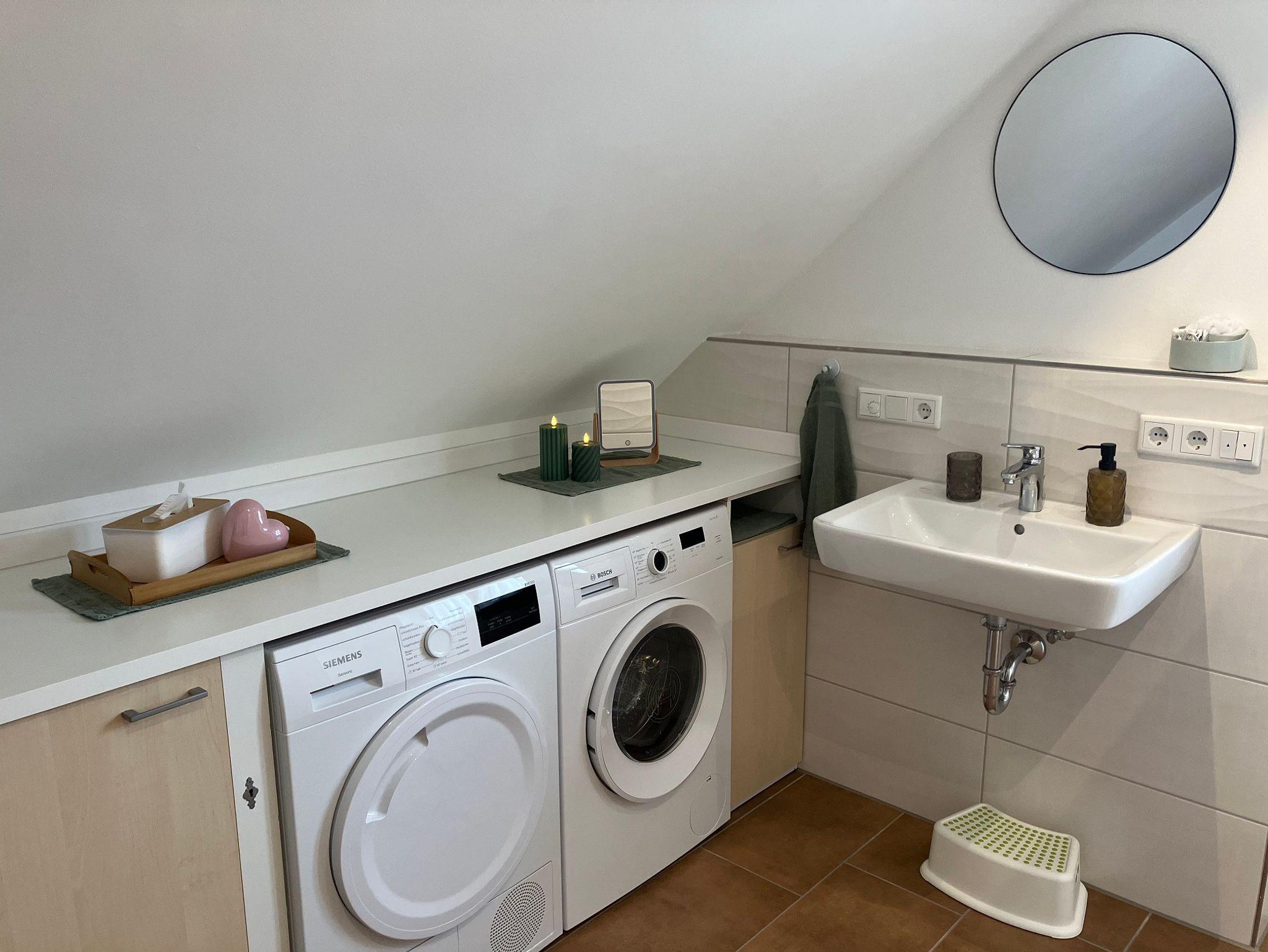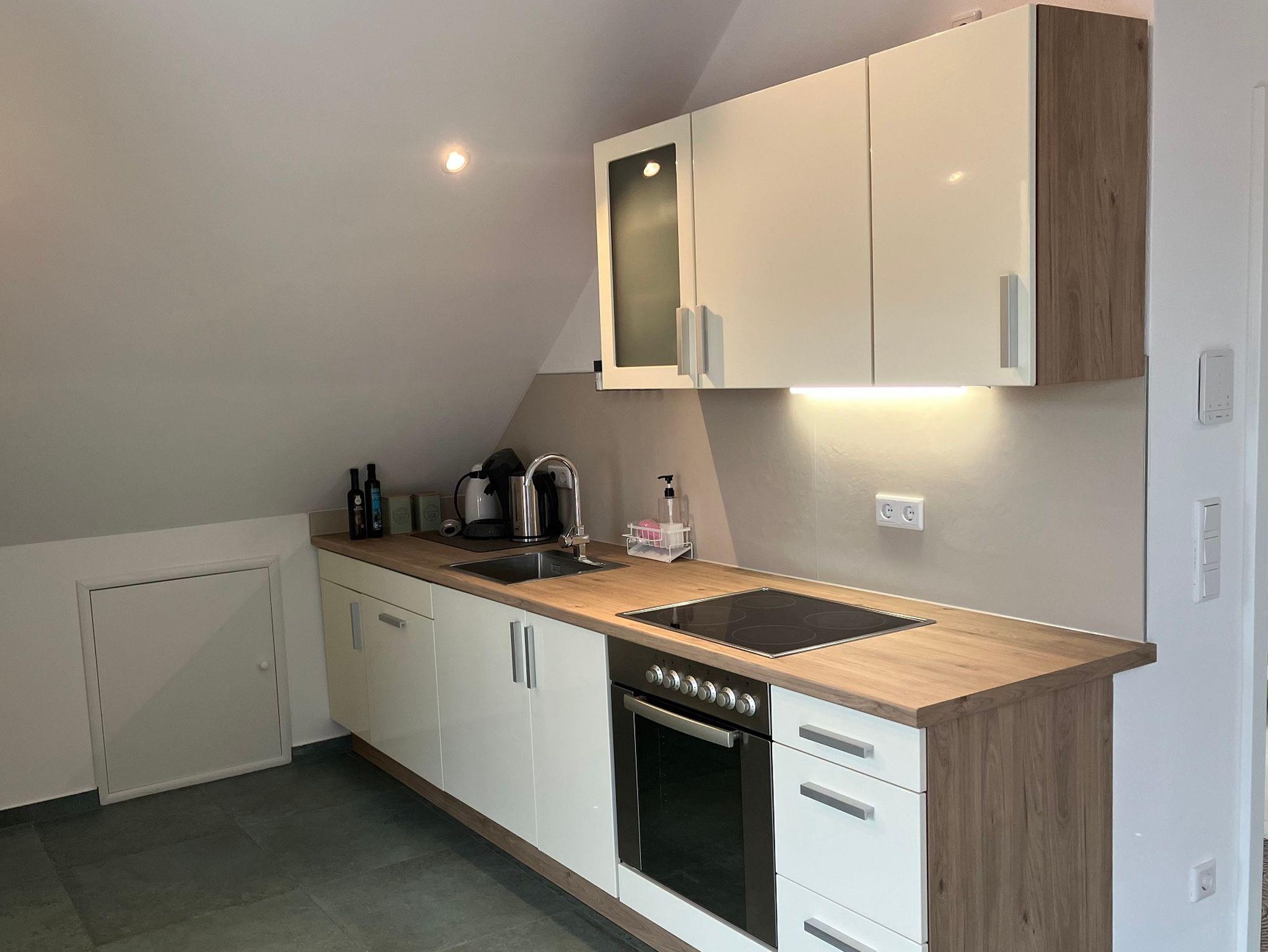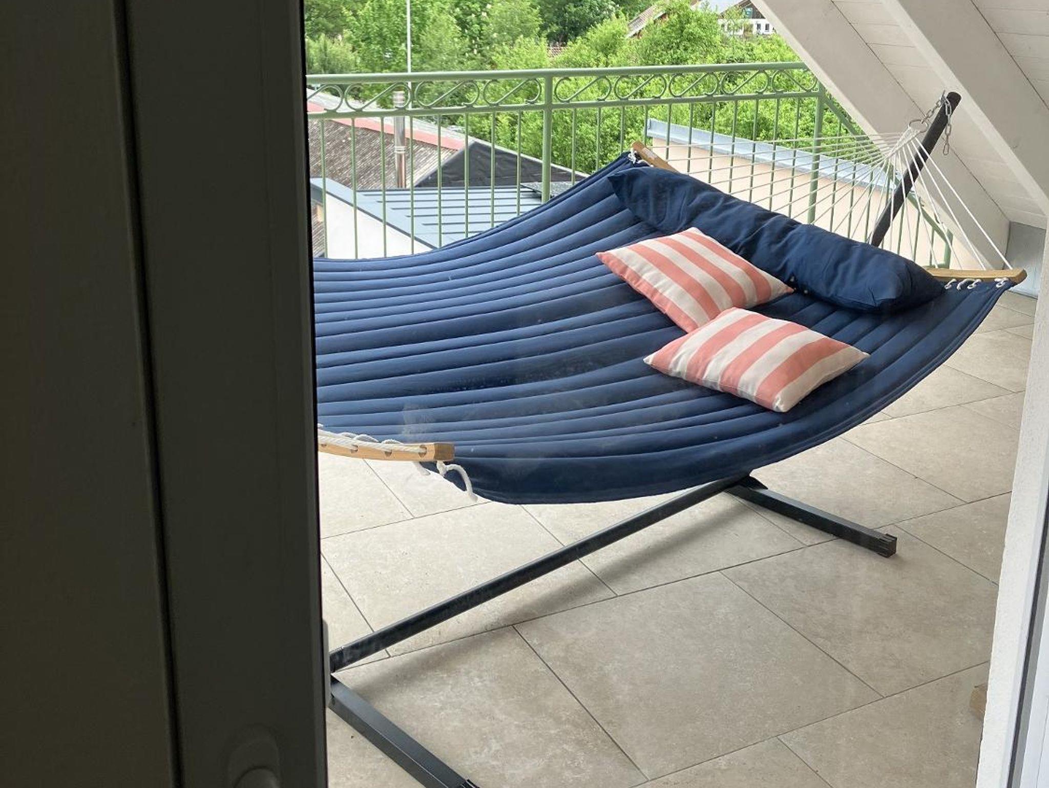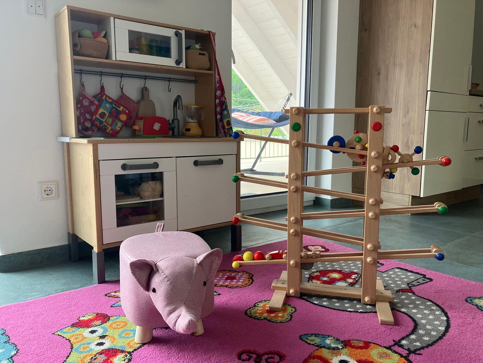 Unsere charmante Ferienwohnung mit Dachterrasse, lädt Sie ein, in der Hängematte zu entspannen und den modernen Komfort eines Neubaus mit Lüftungsanlage zu genießen. Die Wohnung ist liebevoll eingerichtet und bietet mit seinen 68 Quadratmetern viel Platz für Paare oder kleine Familien. Wir bieten Ihnen einen gemütlichen Rückzugsort mit einem Doppelbett, einem Einzel- und einem Ausziehbett. Für unsere ganz kleinen Gäste stellen wir gerne auf Anfrage einen Platz für den Kinderwagen, ein Baby-Reisebett inkl. Matratze, einen Baby-Hochstuhl, einen Spielteppich mit Kinderküche und Holzkugelbahn bereit. Eine voll ausgestattete Küche mit Essecke lädt zum ausgiebigen Frühstück oder einem gemeinsamen Koch- oder Backabend ein. Das moderne Bad mit ebenerdiger begehbarer Dusche, Waschbecken, WC, Waschmaschine, Trockner, Föhn und viel Platz für Ihre Kosmetikartikel wird Ihnen gefallen. Alle Wände sind mit mineralischer Biofarbe gestrichen und somit besonders baby- und allergikerfreundlich. Im Grundpreis sind WLAN, Internet-TV, Bettwäsche, Handtücher und die Endreinigung enthalten.