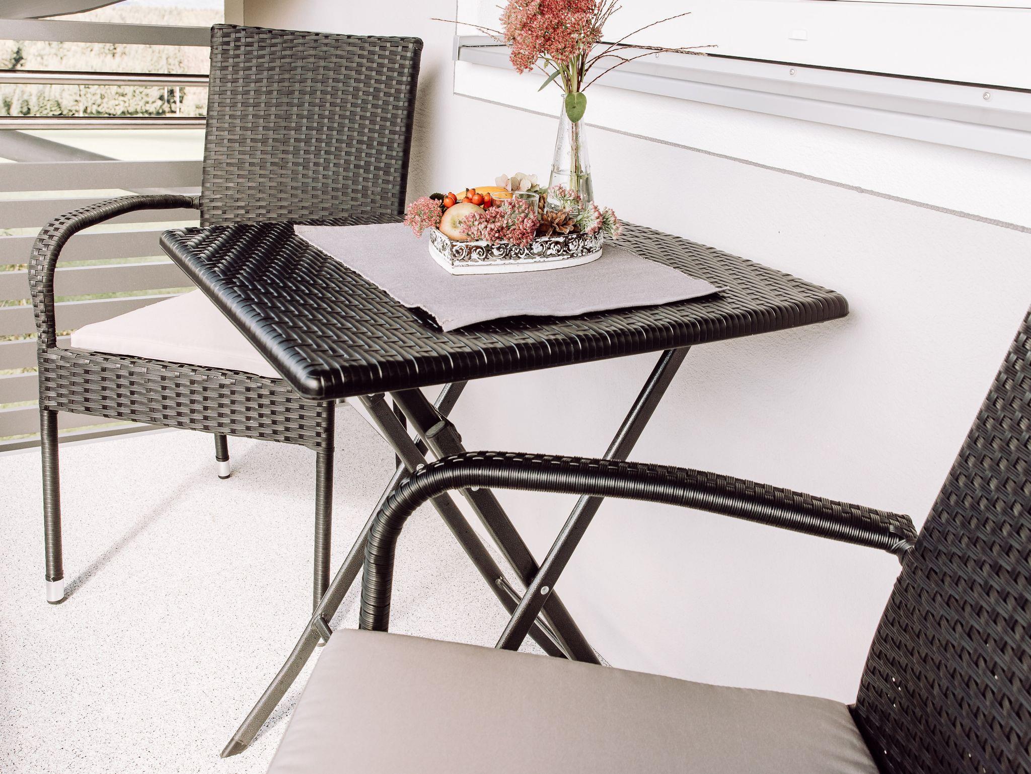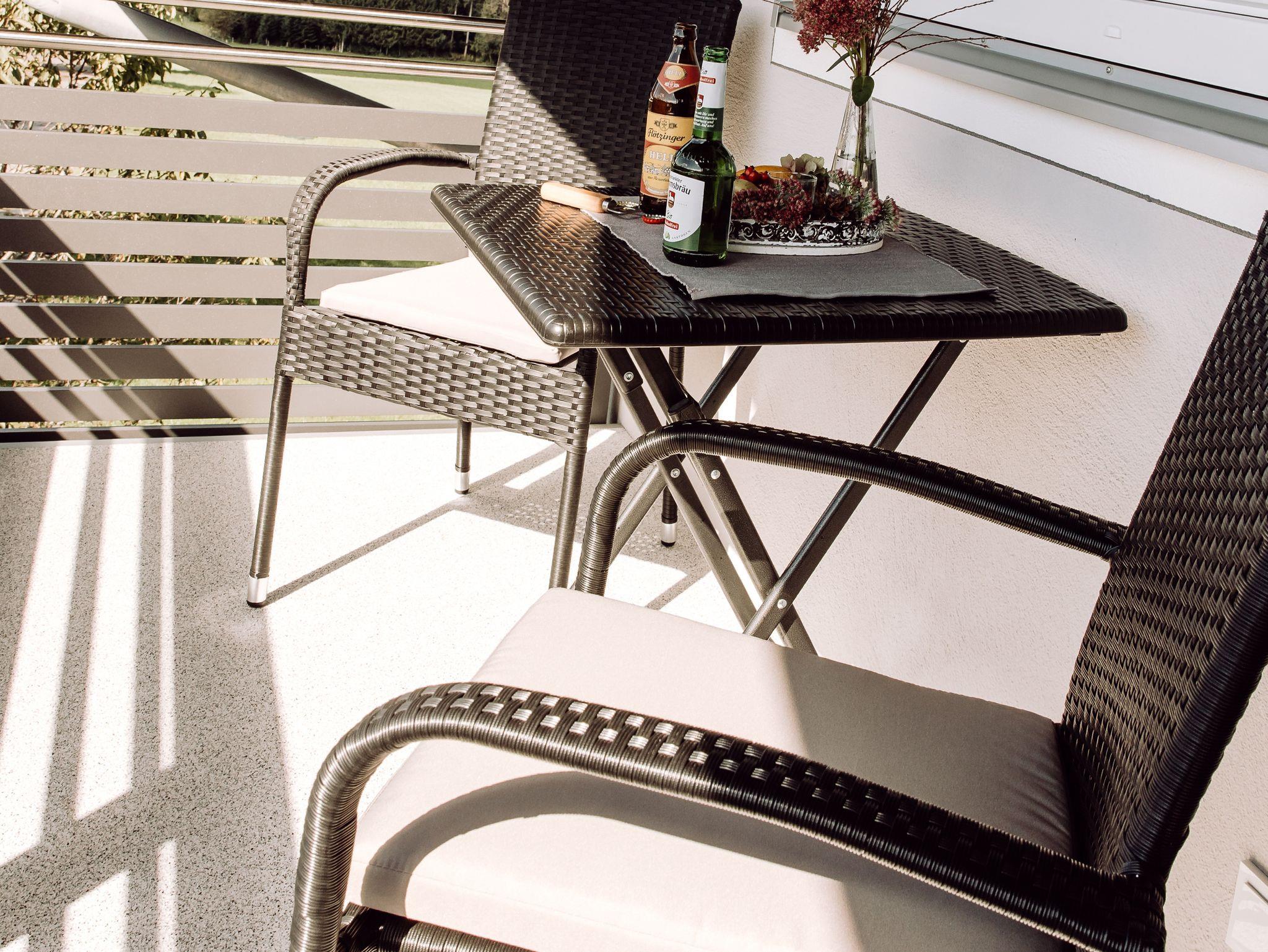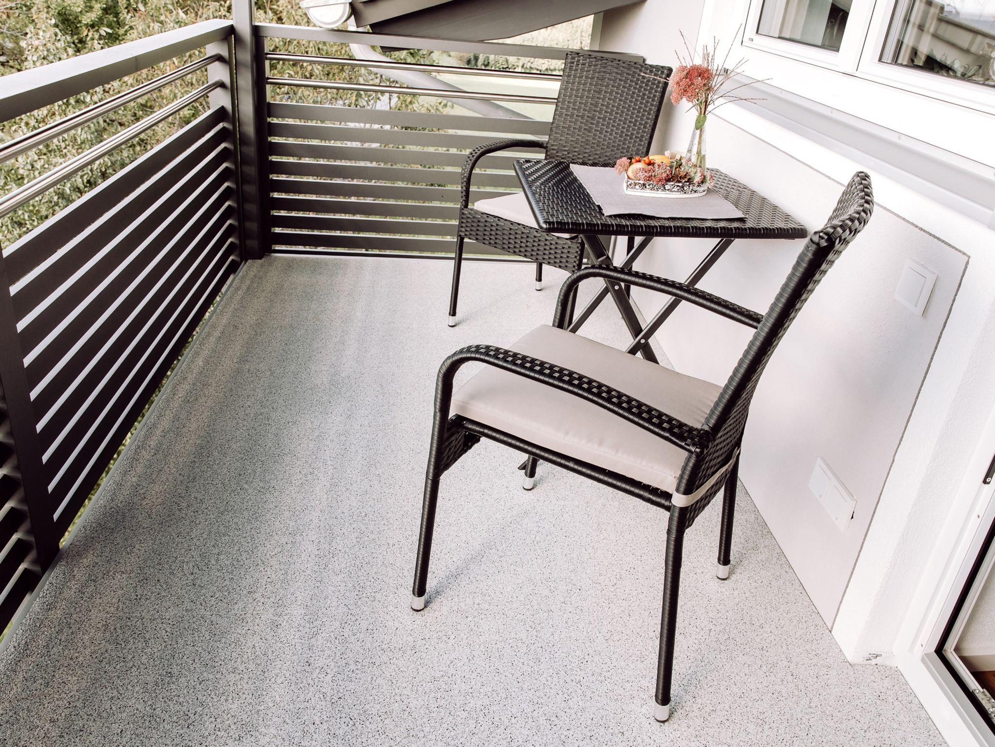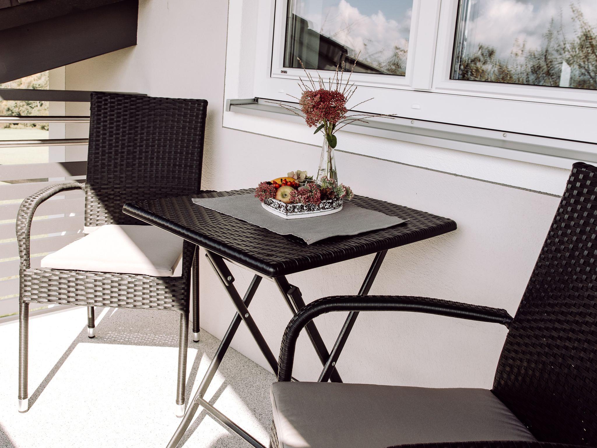 Der gemütliche Südbalkon 3.30m x 1,70m lädt zum Entspannen und Genießen ein. Ausgestattet mit einem kleinem Tisch und Stühlen.