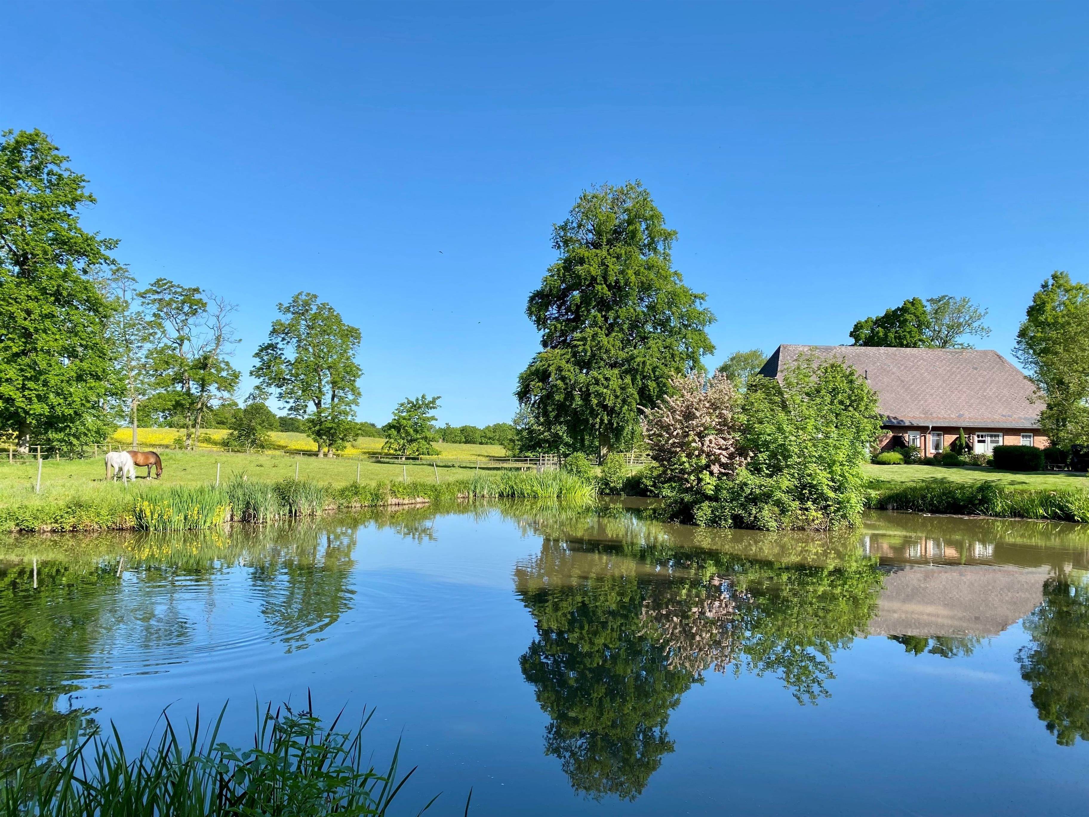 Im Sommer 2012 wurden im ehemaligen Pferdestall des Guts drei moderne, individuelle und liebevoll ausgestattete Premium-Ferienwohnungen eingerichtet. Diese Ferienwohnungen befinden sich in einem Gebäude, das in Einzellage direkt oberhalb des mit Seerosen bewachsenen Gartenteiches liegt. Von dort aus schweift der Blick über den Teich in den Guts-Park mit majestätischen, alten Bäumen, in den Buchenhain und weiter über die Felder. Ein magischer Sitz- und Grillplatz im Buchenwald und ein Steinlabyrinth geben Ihnen ein Gefühl von Frieden und 'angekommen sein'. Alle Ferienwohnungen sind hochwertig ausgestattet mit Internet über WLAN, Satellitenfernsehen und einer Stereokompaktanlage. Die Wohnung 'Romantika' ist 45 m2 groß und eine bezaubernde Unterkunft für bis zu 2 Personen. Eine gemütliche Wohnküche mit Essecke und ein Ausziehsofa vor dem Kamin laden zu kuscheligen Stunden vor loderndem Kaminfeuer ein. Die romantische Atmosphäre wird unterstrichen durch das harmonische Zusammenspiel von zarten Flieder- und Rosétönen mit hochwertigen floralen Stoffen. Einzigartig ist das märchenhafte Doppel-Alkoven-Bett mit Blick in den Sternenhimmel, der einem hilft, in sanfte Träume zu verfallen. Das in weiß gehaltene Badezimmer mit ebenerdiger Duschkabine vollendet das harmonische Ambiente. Zwei Terrassen ermöglichen dem Gast, mit dem Lauf der Sonne den Tag zu beginnen und zu beenden.