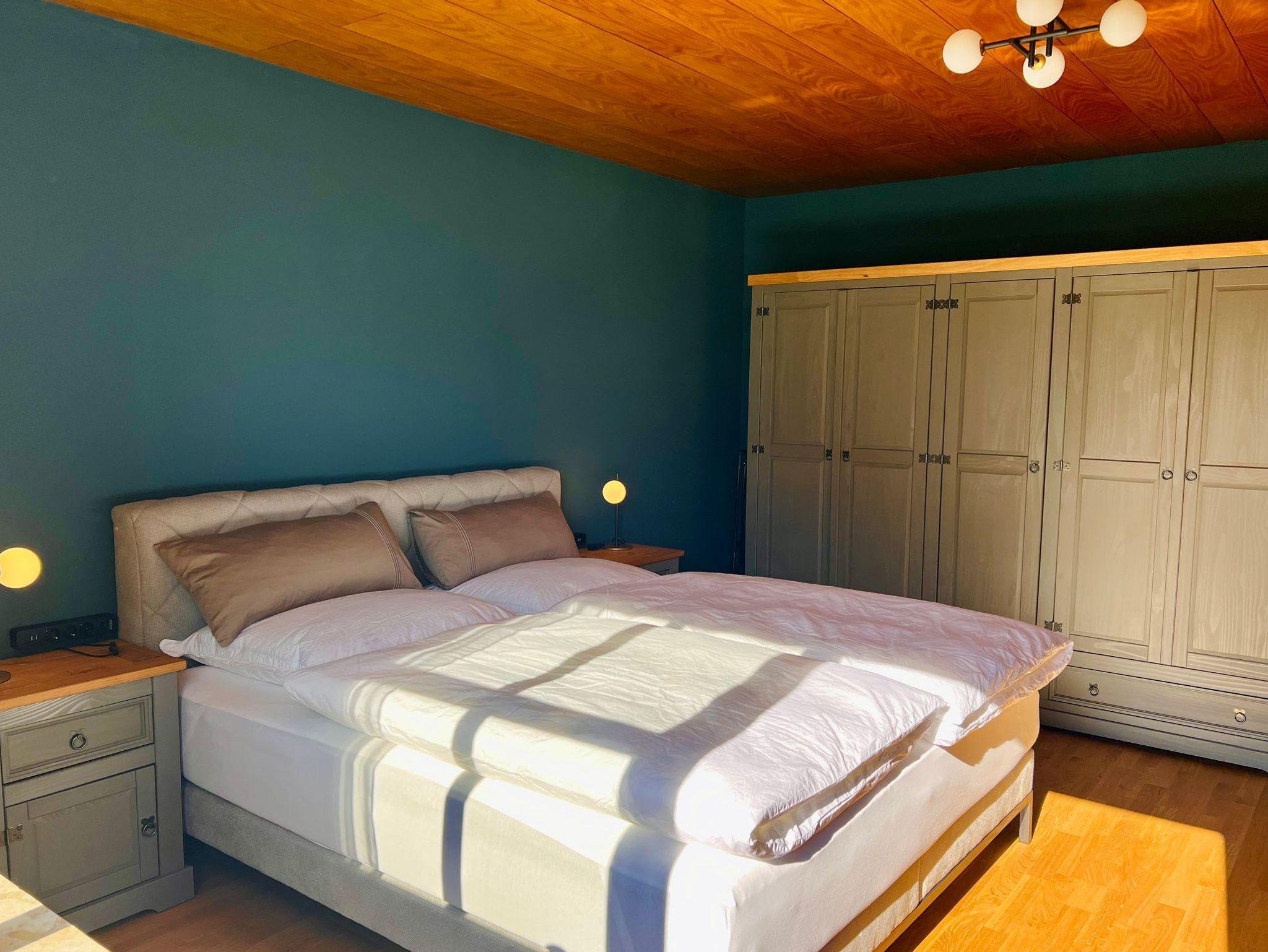 Die Ferienwohnung verfügt über zwei Schlafzimmer mit jeweils einem Doppel-Boxspringbett, Steckdosen und USB-Ladebuchsen am Bett, Flachbild-TV und Luftreinigungsgerät. Geräumige Schränke und Sideboards nehmen alles Mitgebrachte dankbar auf. Selbstverständlich sind die bequemen Betten für Sie bereits frisch bezogen!