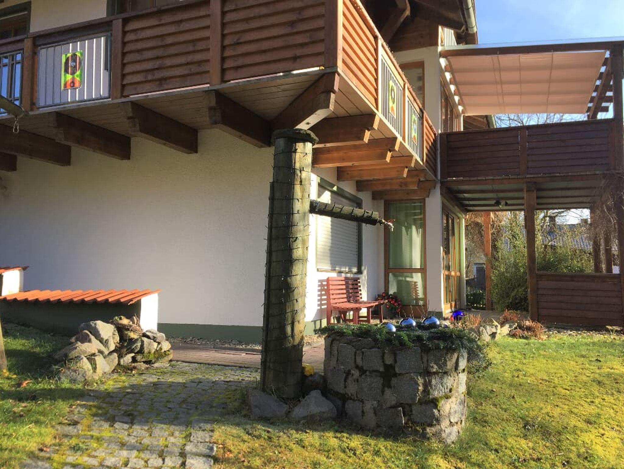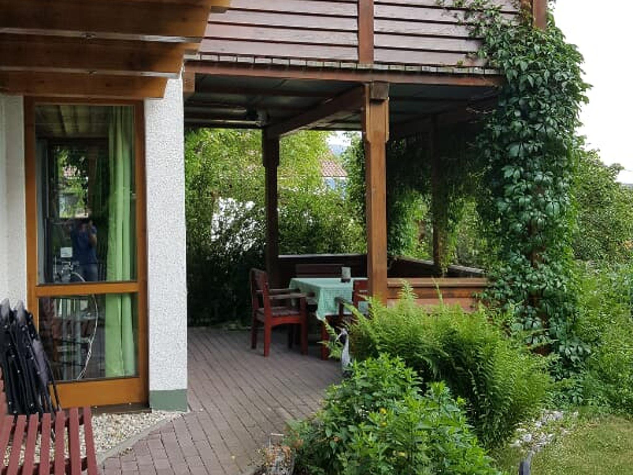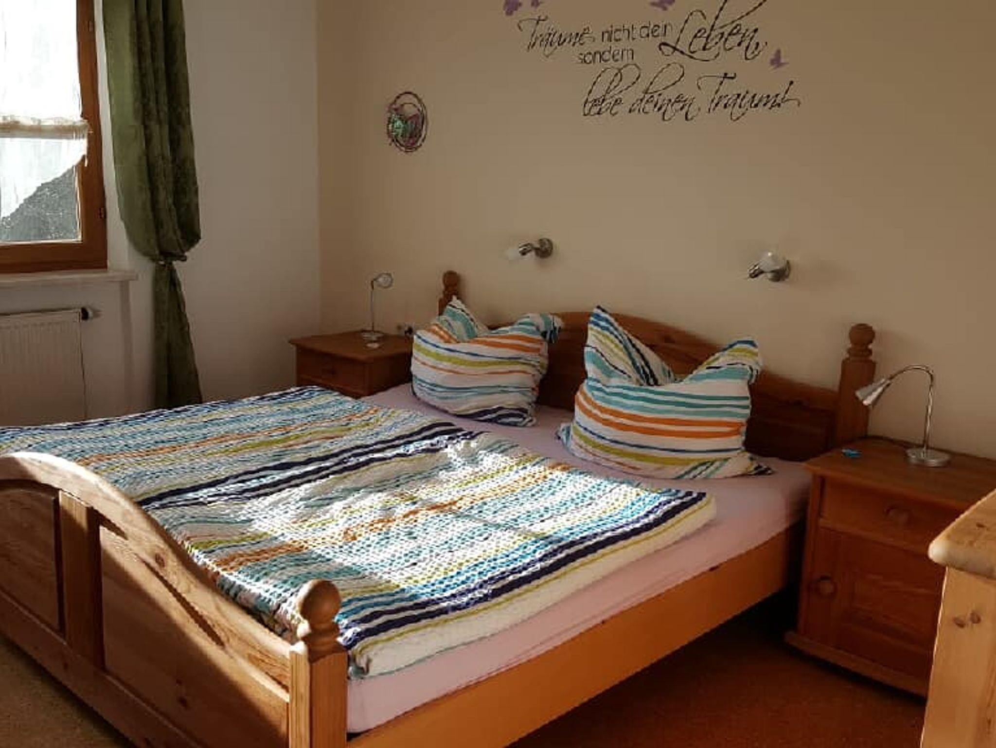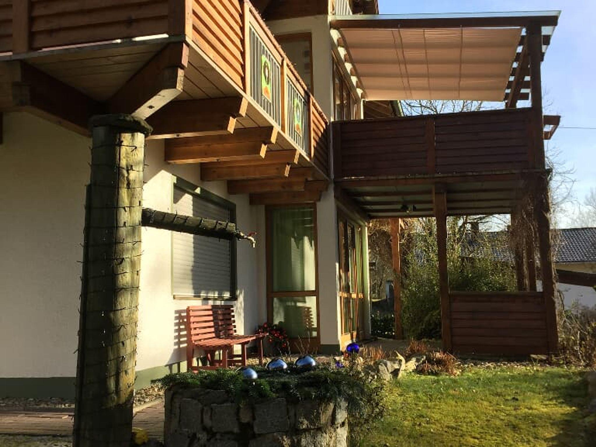 Ihnen steht eine ebenerdige, renovierte 70 qm große Ferienwohnung für bis zu 5 Personen im Erdgeschoß mit eigenem Eingang, sowie eine eigene, möbillierte und überdachte Terrasse mit Grill, Gartenliegen und privatem, kostenlosen Parkplatz zur Verfügung. Die Wohnung verfügt über ein Bad mit Dusche/WC, zwei Schlafzimmern mit je einem Doppelbett (180*200), ein weiteres Zustellbett ist möglich. In dem kombinierten Wohn/Essbereich finden Sie einen FlachTV, DVD Player und Radio. In der vollausgestatteten Küche befindet sich ein Kühlschrank mit 3 Gefrierfächern, Herd mit Backofen, eine Mikrowelle, Kaffeemaschine,Toaster, Eierkocher und Mixer. In der Gästeecke finden Sie Wanderkarten, Gesellschaftsspiele und Infomaterial. Im Preis inkl.: Handtücher und Bettwäsche, Babybett/Hochstuhl, Endreinigung, sowie eine Hygieneerstausstattung für Küche/Bad für die ersten Tage und eine Flasche Wasser. Haustiere gegen einmalige Gebühr in Höhe von 20,00 Euro.