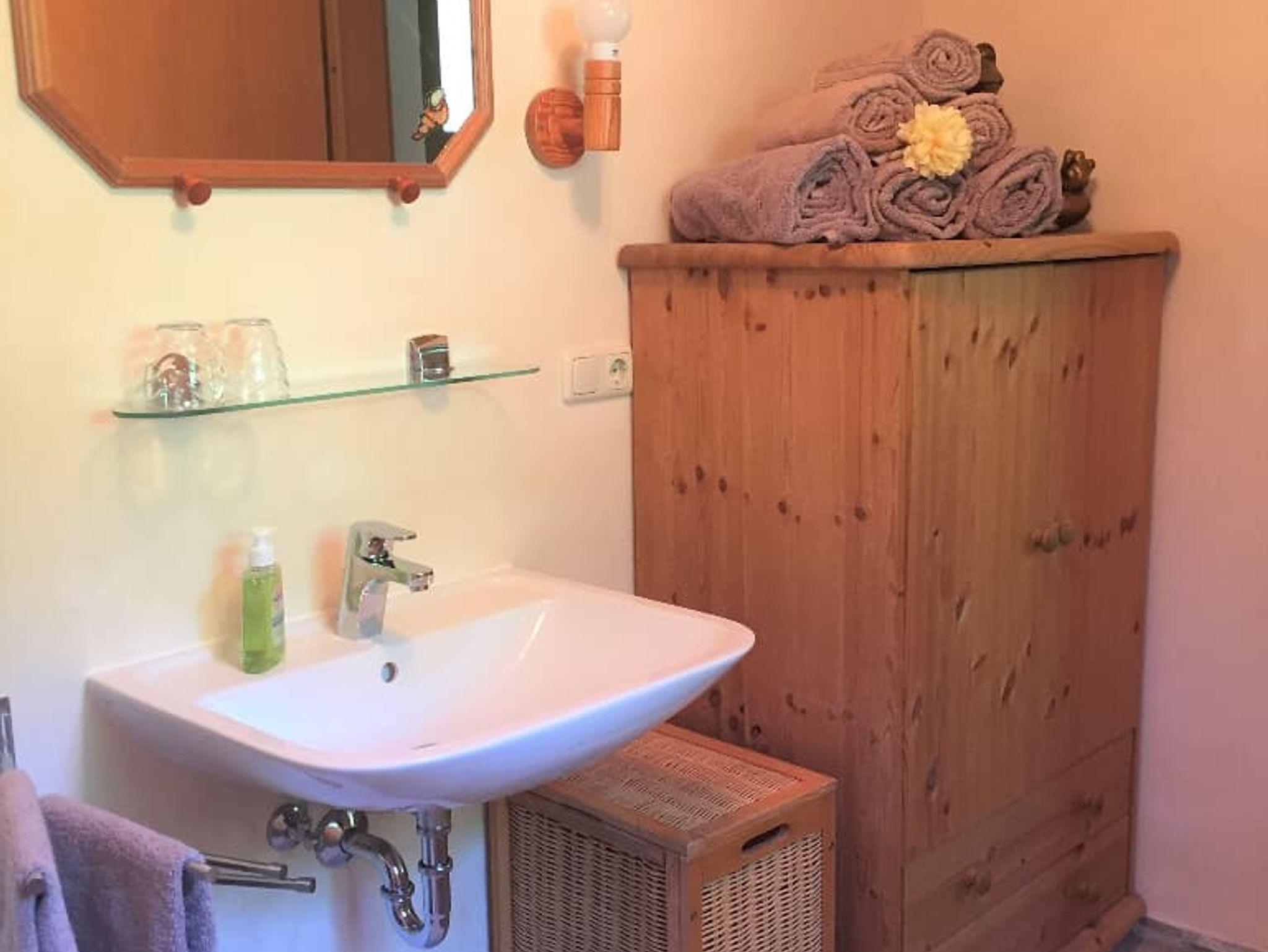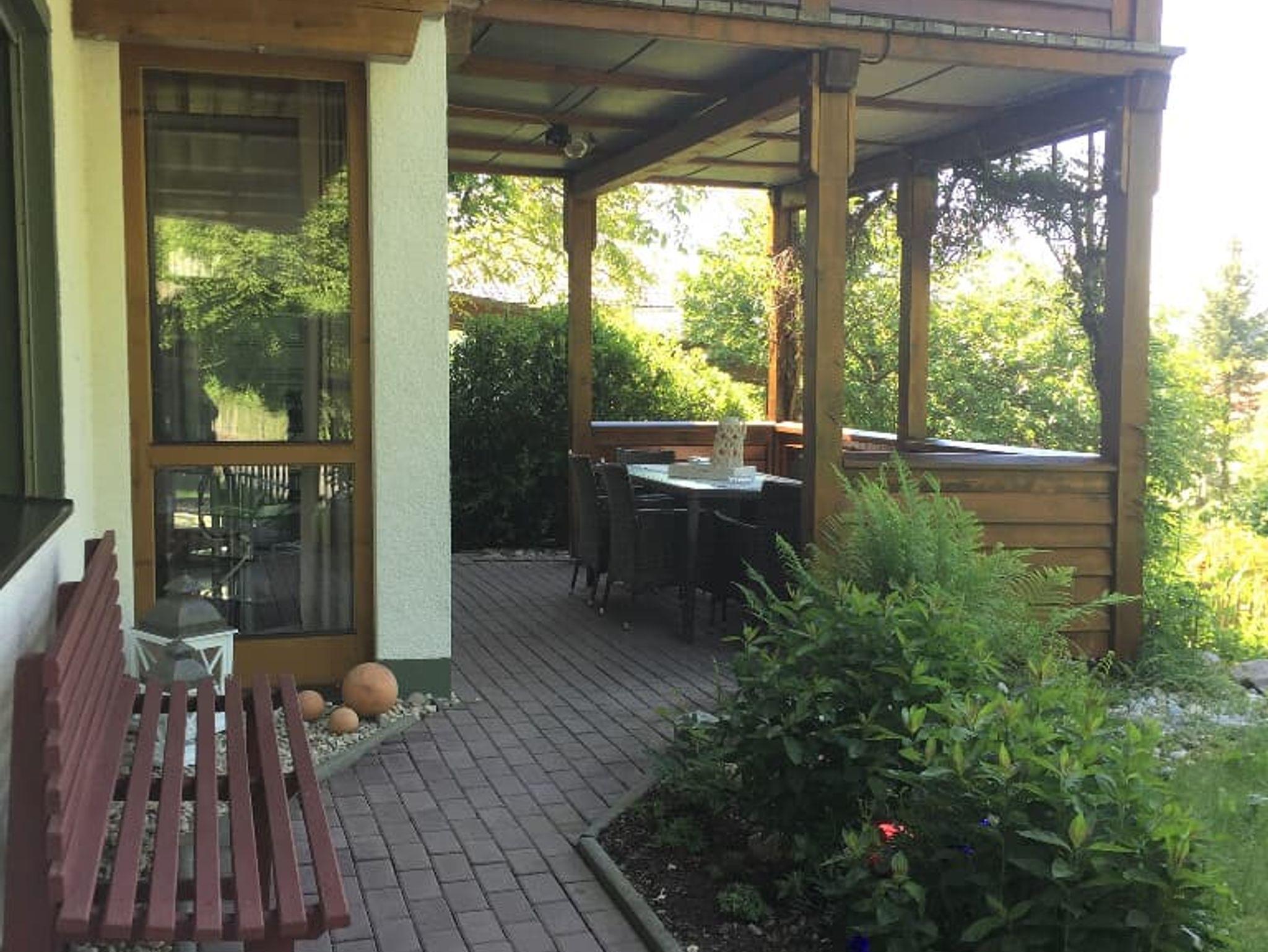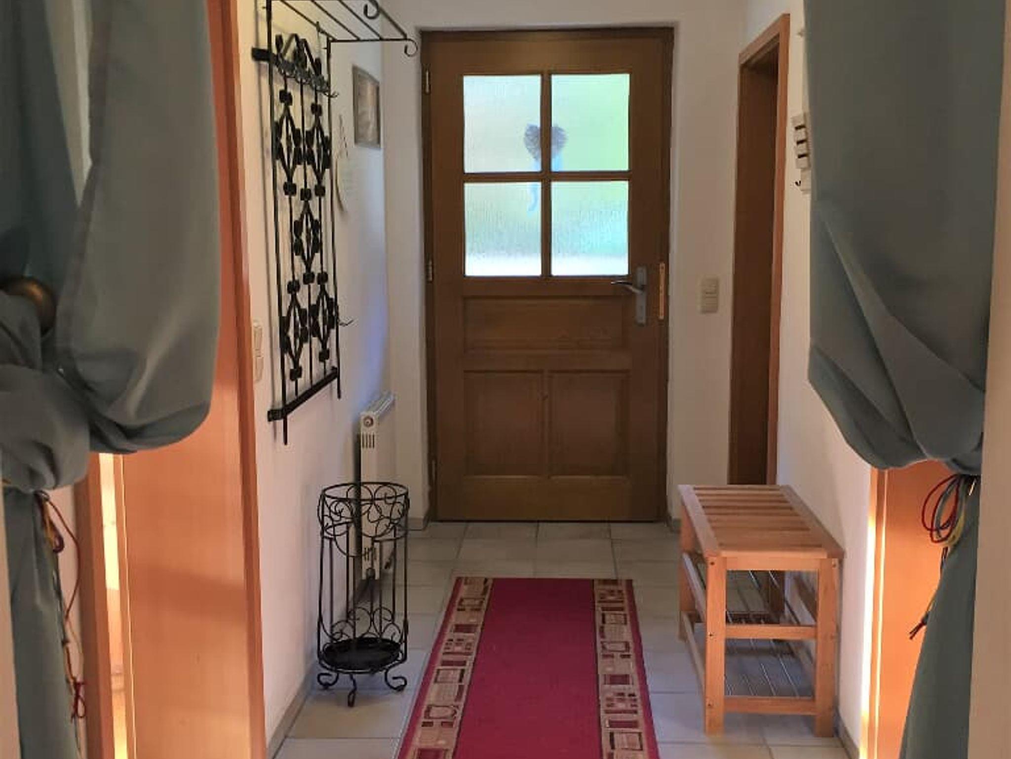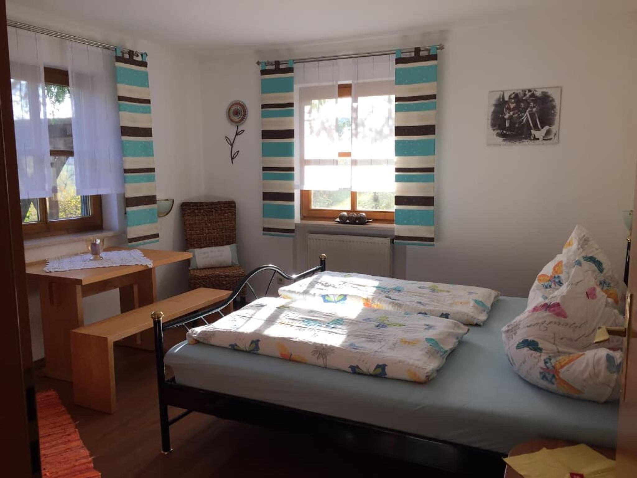 Ihnen steht eine ebenerdige, renovierte 70 qm große Ferienwohnung für bis zu 5 Personen im Erdgeschoß mit eigenem Eingang, sowie eine eigene, möbillierte und überdachte Terrasse mit Grill, Gartenliegen und privatem, kostenlosen Parkplatz zur Verfügung. Die Wohnung verfügt über ein Bad mit Dusche/WC, zwei Schlafzimmern mit je einem Doppelbett (180*200), ein weiteres Zustellbett ist möglich. In dem kombinierten Wohn/Essbereich finden Sie einen FlachTV, DVD Player und Radio. In der vollausgestatteten Küche befindet sich ein Kühlschrank mit 3 Gefrierfächern, Herd mit Backofen, eine Mikrowelle, Kaffeemaschine,Toaster, Eierkocher und Mixer. In der Gästeecke finden Sie Wanderkarten, Gesellschaftsspiele und Infomaterial. Im Preis inkl.: Handtücher und Bettwäsche, Babybett/Hochstuhl, Endreinigung, sowie eine Hygieneerstausstattung für Küche/Bad für die ersten Tage und eine Flasche Wasser. Haustiere gegen einmalige Gebühr in Höhe von 20,00 Euro.