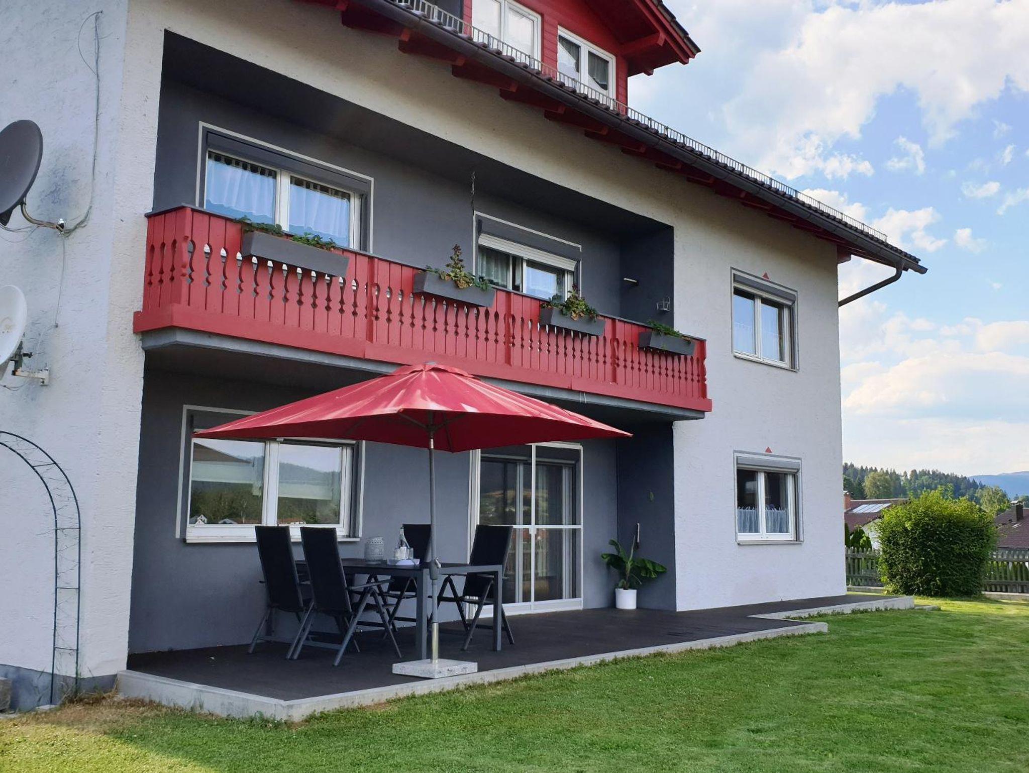 Die Ferienwohnung hat eine voll ausgestattete Küche, Ess- und Wohnzimmer mit Smart-TV und Sofa mit Schlaffunktion. Großem Schlafzimmer (2 Pers.), Badezimmer mit Dusche und Badewanne, Waschmaschine, Sportraum bzw. zweitem Schlafzimmer (3 Pers.), separater Toilette. Abschließbare Garage mit Lagermöglichkeit für Fahrräder u.ä., große Terrasse mit weitläufiger Liegewiese, sowie einem großem Garten mit einer luxuriöse Outdoorlounge. Ruhige Lage mit tollem Panoramablick über Rinchnach und die umliegenden Berge. Kostenloses W-LAN, Handtücher, Bettwäsche und weitere verschiedene Annehmlichkeiten werden gestellt!