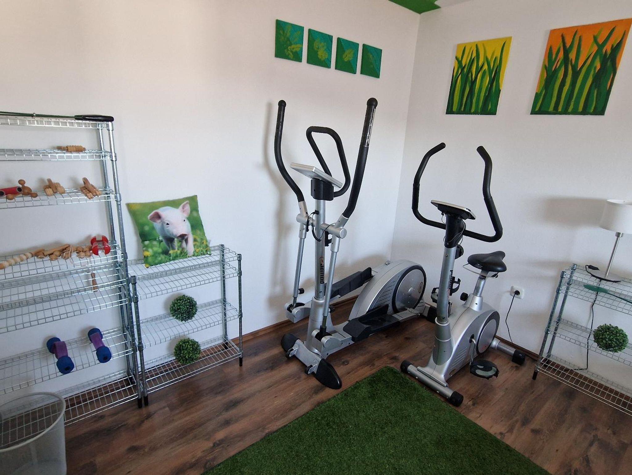 Die Ferienwohnung hat eine voll ausgestattete Küche, Ess- und separates Wohnzimmer mit Smart-TV und Sofa mit Schlaffunktion. Großem Schlafzimmer mit Doppelbett (2 Pers.), Badezimmer mit Dusche und Badewanne, sowie einer Waschmaschine. Desweiteren einen Sportraum bzw. ein zweites Schlafzimmer mit einem 140cm Doppelbett und einem Einzelbett (3 Pers.) und natürlich eine separate Toilette. Eine abschließbare Garage mit Lagermöglichkeit für Fahrräder u.ä. steht den Gästen ebenso wie die große Terrasse mit weitläufiger Liegewiese und einem großem Garten mit einer luxuriösen Outdoorlounge zur Verfügung.