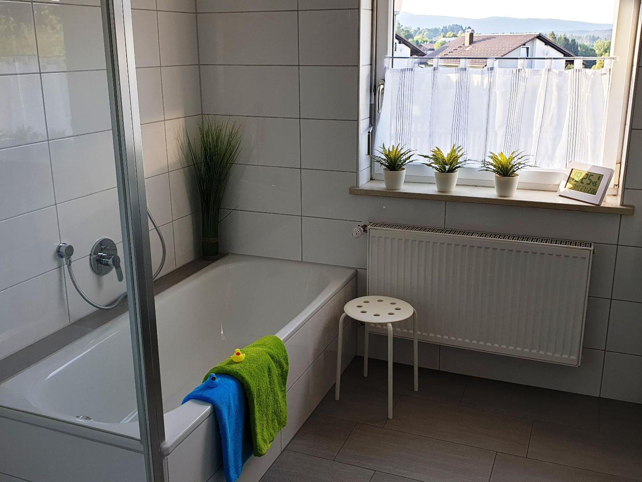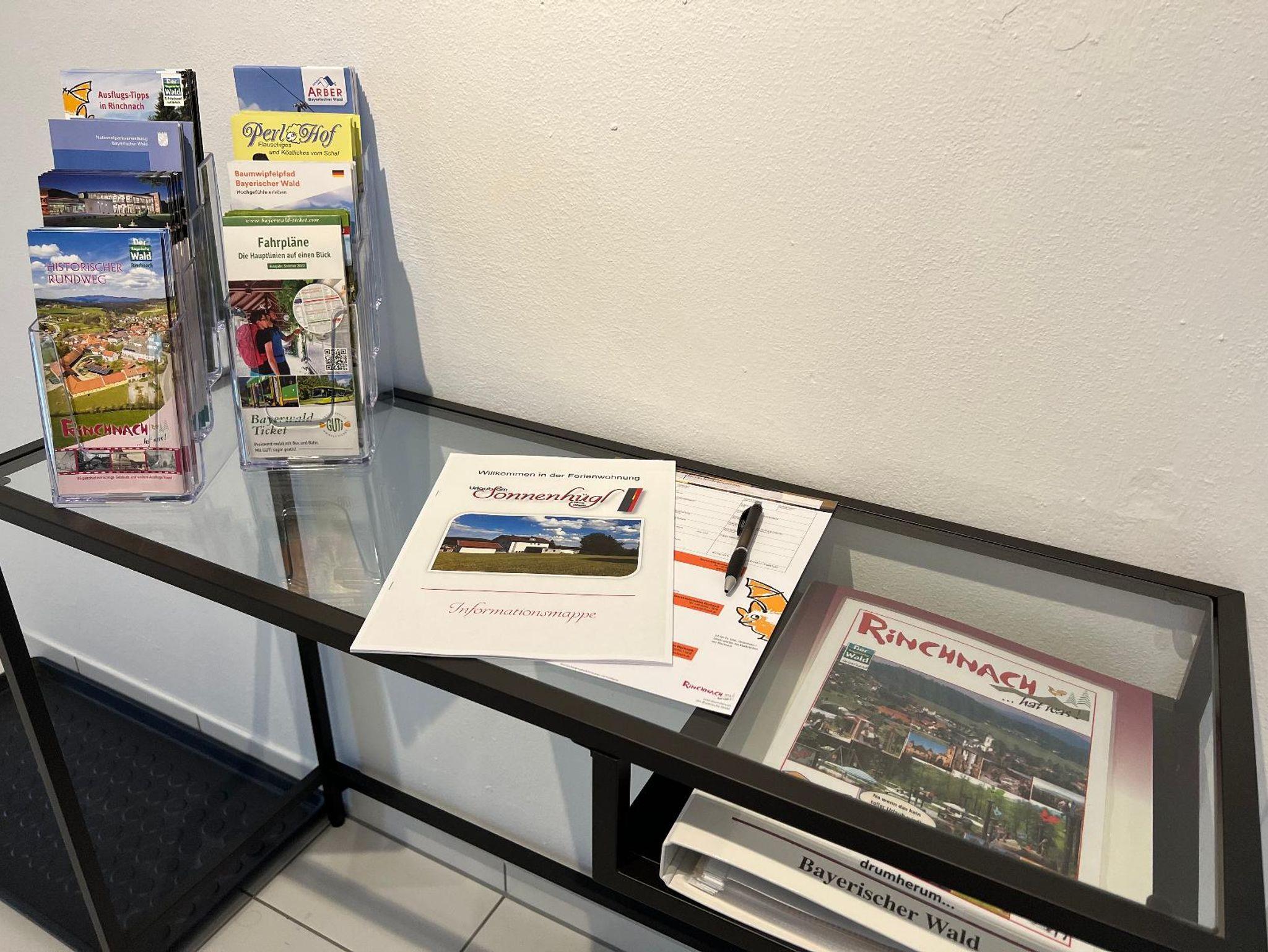 Ruhige Lage mit tollem Panoramablick über Rinchnach und die umliegenden Berge. Selbstverständlich kostenlosem W-LAN, Handtücher (jeder Gast in einer eigenen Farbe) und das passende Quietscheentchen (welche gerne als Andenken mitgenommen werden darf), sowie Bettwäsche. Weitere Annehmlichkeiten wie Gewürze, Kaffee- und Kakaopads, die Spülmaschine, Toaster und Mixer, Servietten, Brennholz für den Kamin, Duschgel, Shampoo und Badewürfel, kleine Leckereien und Mineralwasser, sowie gekühlte regionale Getränke im Kühlschrank stehen den Gästen zur Verfügung.