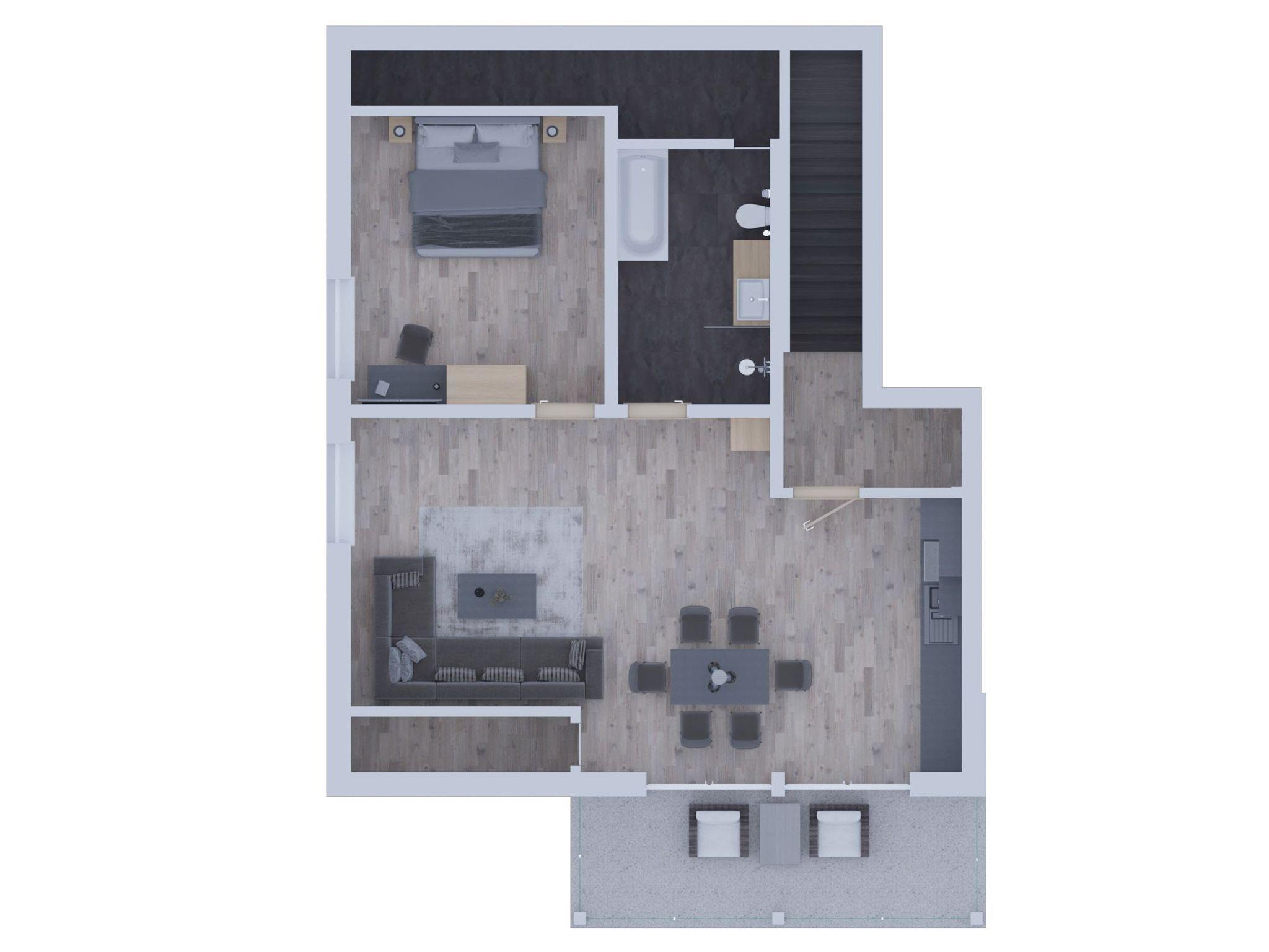 Die komplett ausgestattete Küche lädt dazu ein, Ihre Lieblingsgerichte zuzubereiten und gemeinsame Mahlzeiten zu genießen. Erleben Sie einen unvergesslichen Aufenthalt in diesem stilvollen Penthouse-Apartment.
