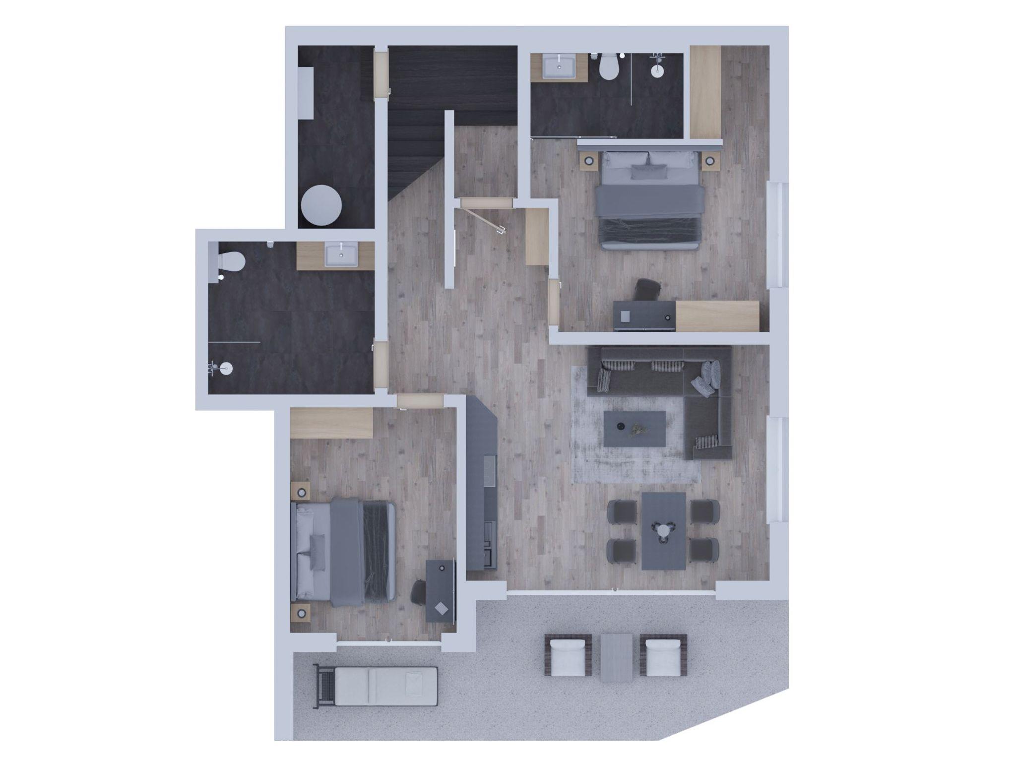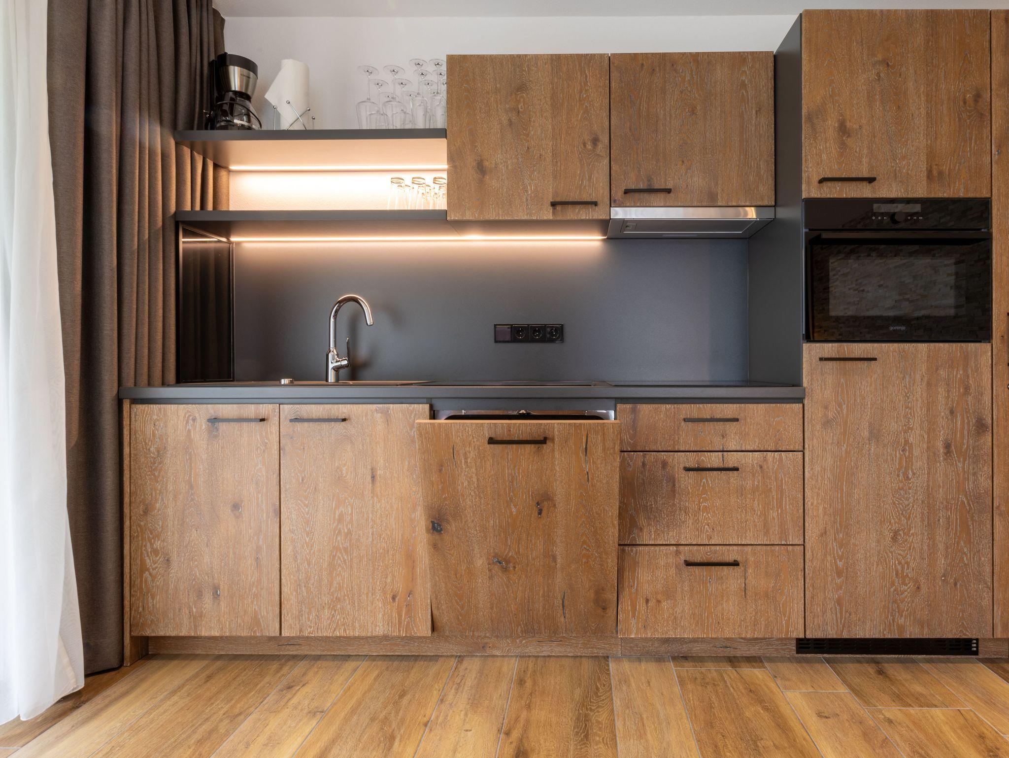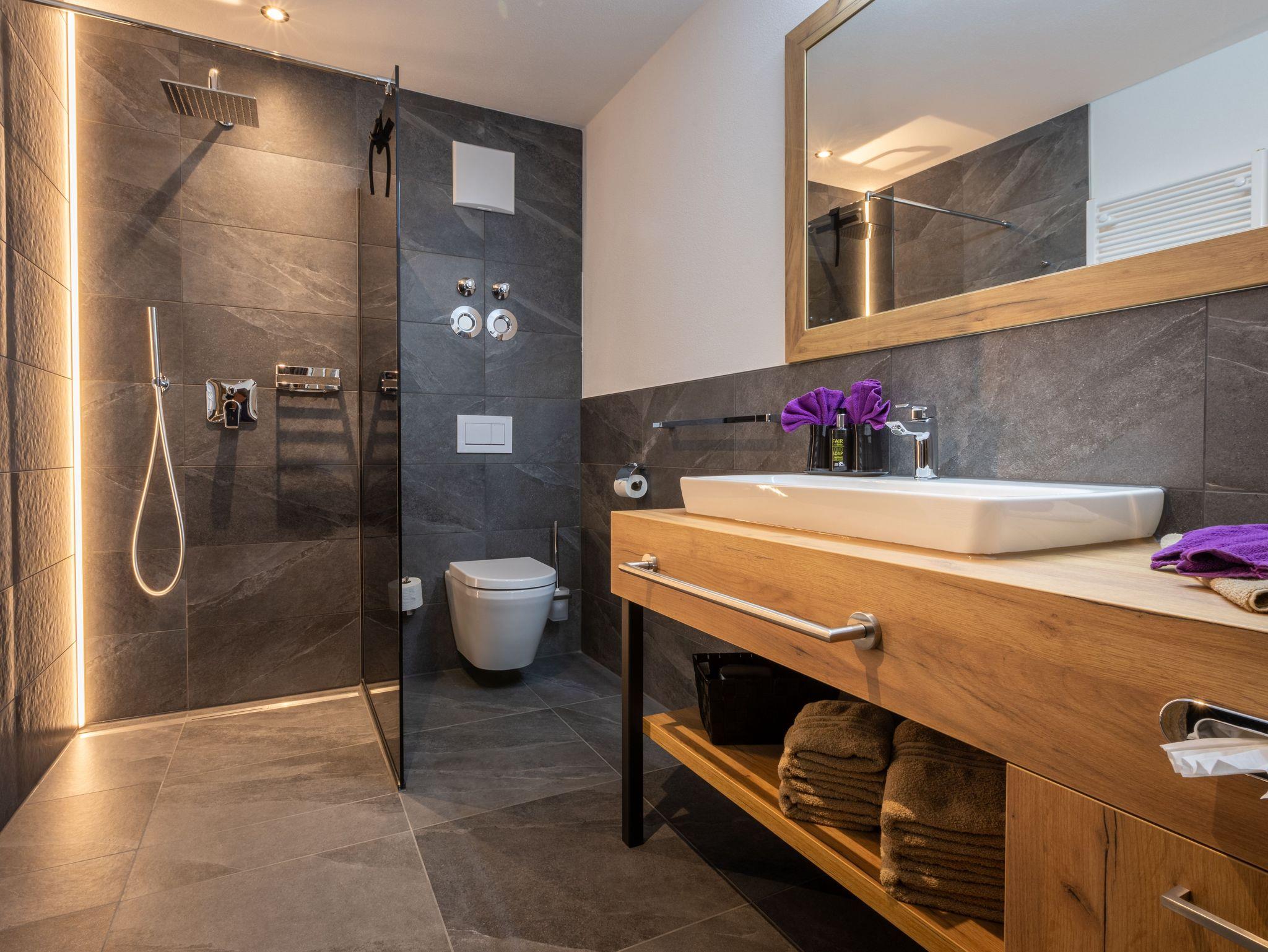 Mit effizient gestalteten Schlafzimmern mit zum Teil bodentiefen Fenstern und Boxspringbetten, modern gestalteten Bädern mit Regendusche, offen gehaltenem Flur, Wohn- und Essbereichen lässt es sich wunderbar entspannen und dem Alltag entfliehen. Unser dezentrales Lüftungssystem realisiert den geforderten Luftwechsel und sorgt für einen behaglichen und gesunden Luftumtausch in allen Appartements. Alle Appartements sind mit WLAN und TV-Flatscreen in allen Wohn- und Schlafzimmern ausgestattet und über einen Personenaufzug von der Tiefgarage bis zum Dachgeschoss erreichbar.