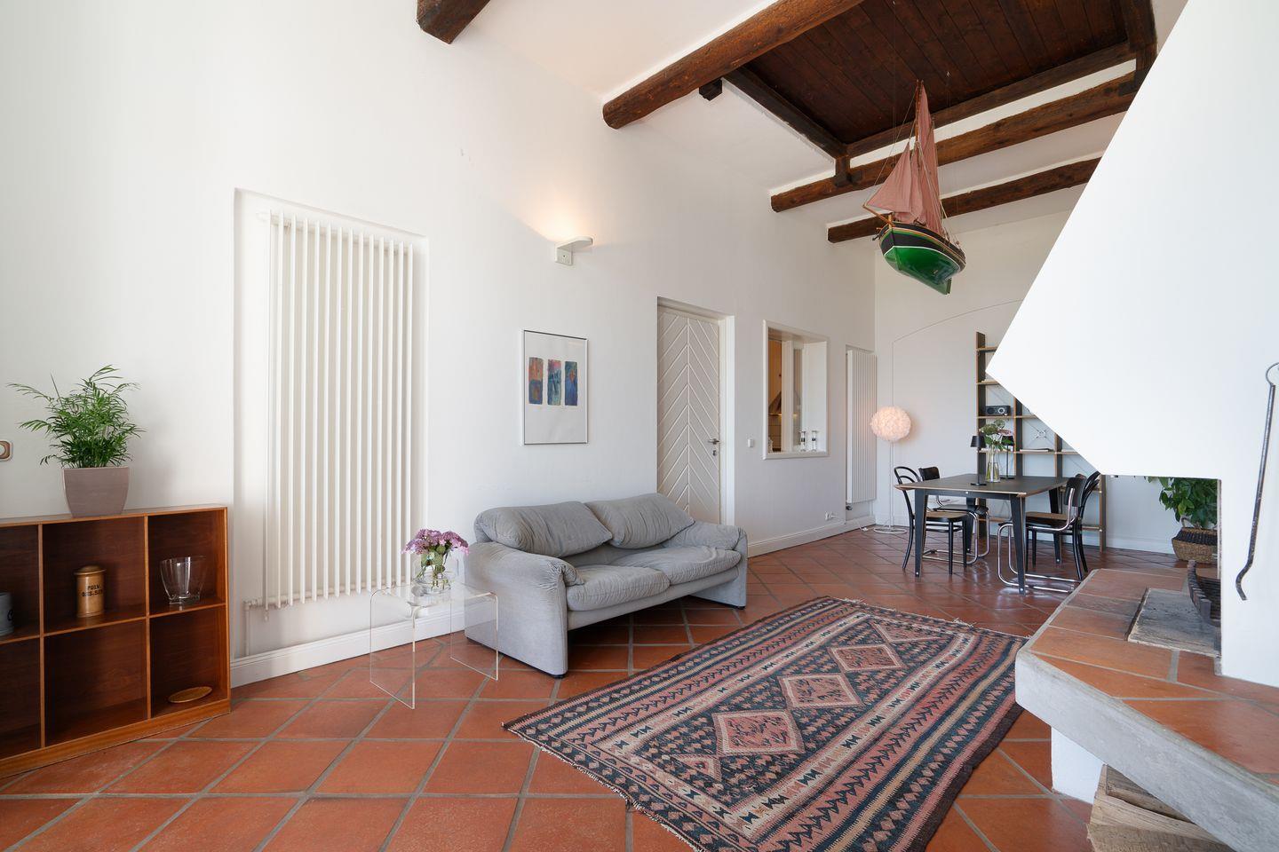 Im hellen und großzügigen Schlafzimmer mit gemütlichem Sofa steht ein bequemes Doppelbett (2x 90 cm x 200 cm). Vom Bett aus können Sie einen wunderbaren Blick in die weite Landschaft genießen.