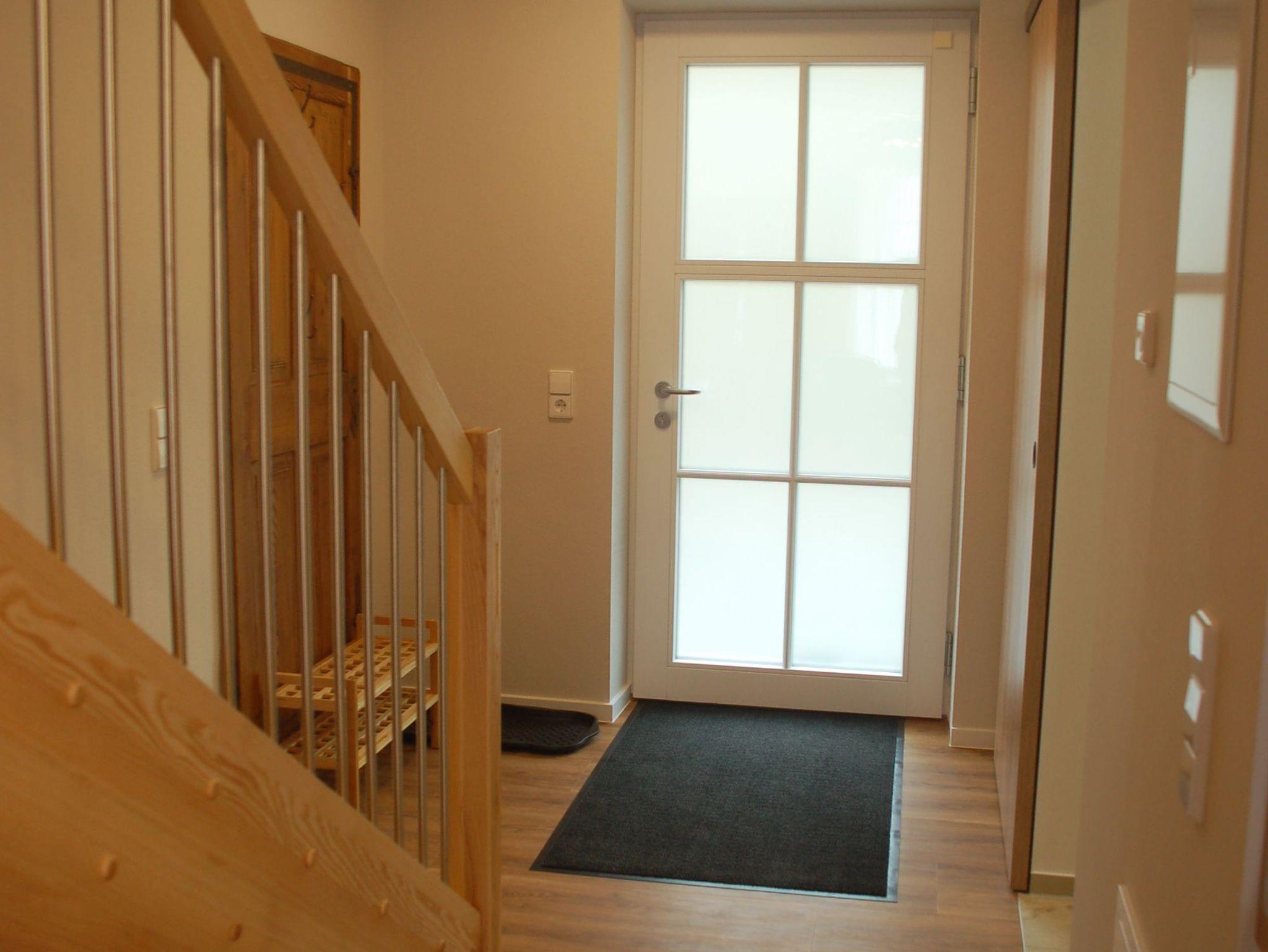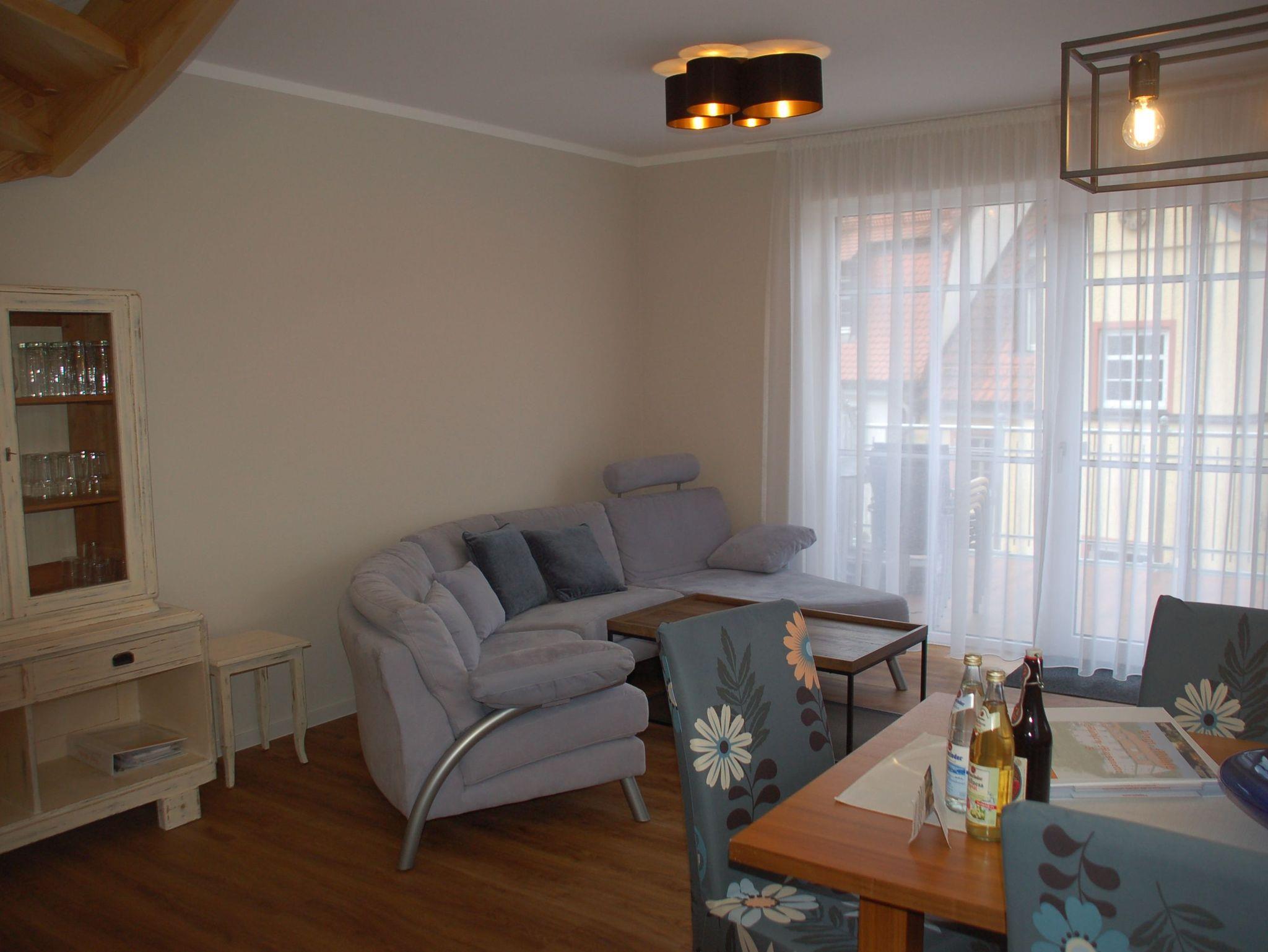 Die Maisonette Wohnungen erstrecken sich über zwei Ebenen. Im unteren Bereich befindet sich ein großzügiges Badezimmer mit schwellenloser Dusche und WC. Der große Wohn-/Essbereich ist mit einer komplett ausgestatteten Küchenzeile, einem großen Esstisch und einer gemütlichen Couch bestückt. Ein terrassenähnlicher Balkon in Süd-/West-Ausrichtung rundet die hervorragende Ausstattung ab und lädt sowohl zum Sonne genießen als auch zum Essen im Freien ein. Über eine bequem begehbare Holztreppe aus heimischem Ahorn erreichen unsere Gäste die im oberen Bereich gelegenen zwei Schlafzimmer sowie das separate WC.