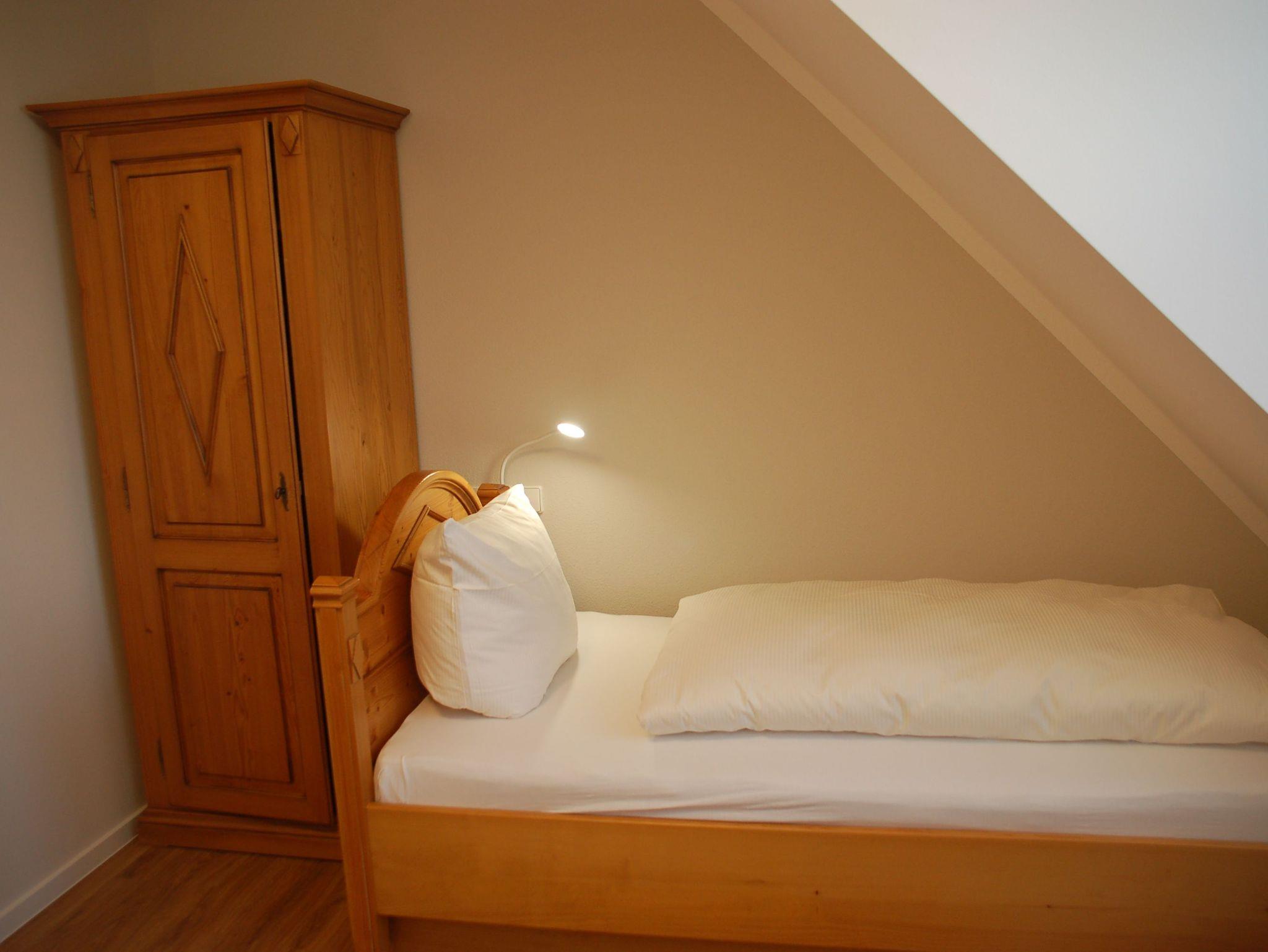Im Elternschlafzimmer erwartet unsere Gäste eine 180 cm breites Doppelbett sowie ein 140 cm langes Kinder-Gitterbett.