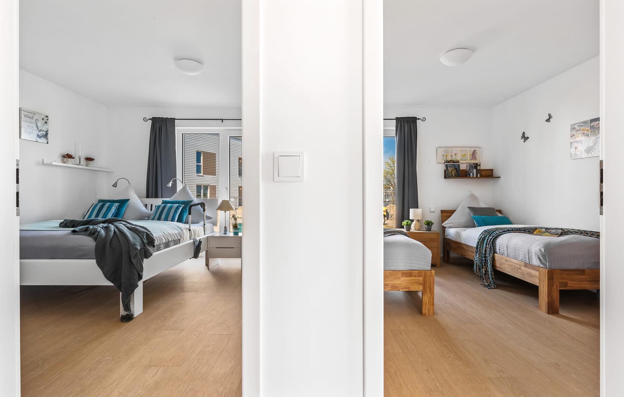 Det er to soverom med komfortable senger for en god natts søvn. Det første soverommet er utstyrt med en dobbeltseng med komfortabel innstigningshøyde og individuelt elektrisk justerbare lamellrammer, mens det andre soverommet med to enkeltsenger (90 x 200 cm) innbyr til en avslappende nattesøvn. En av sengene har en løftestolpe og kan justeres i høyden ved hjelp av en motorisert ramme. Sovesofaen i oppholdsrommet tilbyr ytterligere to soveplasser.