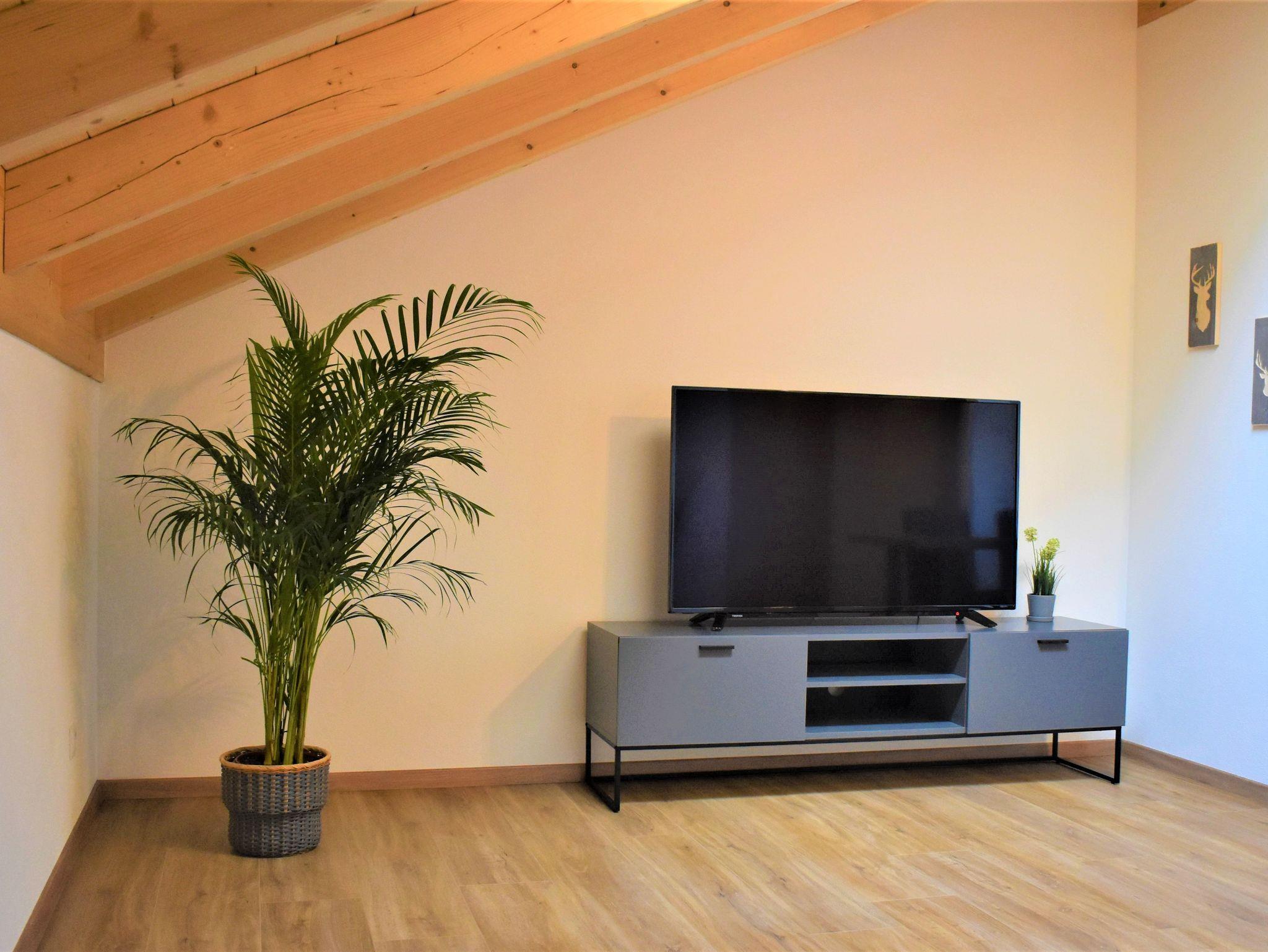 Die Couch bietet zusätzlich die Möglichkeit sie für eine 5. Person auszuziehen. Der 55-Zoll große Fernseher liefert Ihnen über Satellit eine große Auswahl an Sendern.