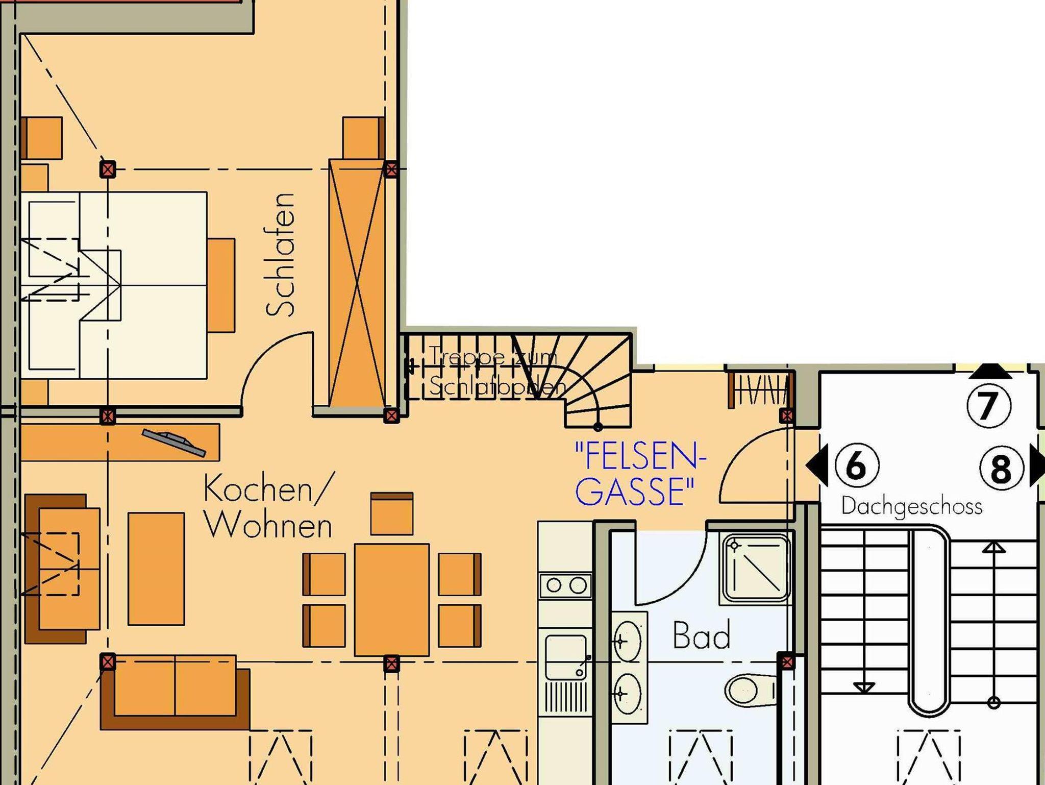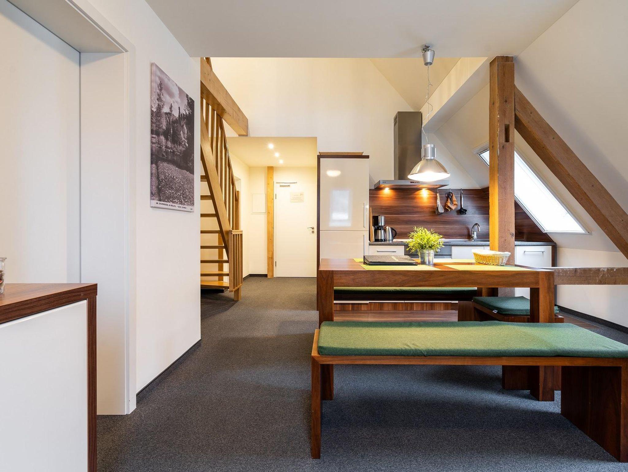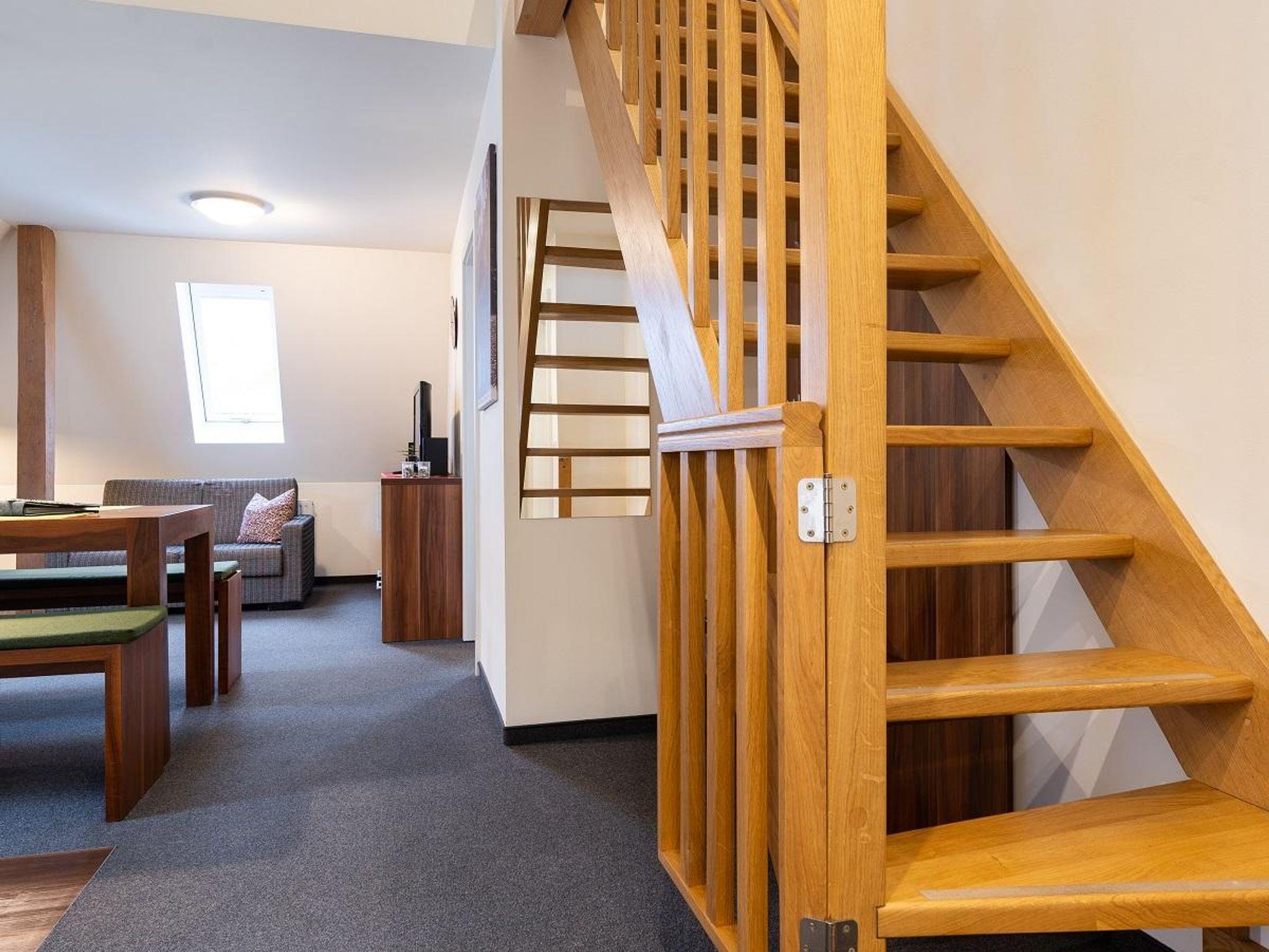 Eine großzügig, helle Ferienwohnung im 2. Stock des Hauses mit 1 separaten Schlafzimmer und einer Schlafgalerie, bietet Platz für 1 - 4 Personen und hat eine Größe von 65m². Der Charme dieser Wohnung stellt das sichtbare Fachwerk und die Galerie zum Schlafen mit der Wohlfühlatmosphäre eines gemütlichen Dachgeschosses dar. Besonderer Wert wurde auf die Sicherheit unserer Kleinsten gelegt und die Treppe mit Schutzgittern versehen. Nichtraucherwohnung, sowie Tierhaarallergie geeignet.