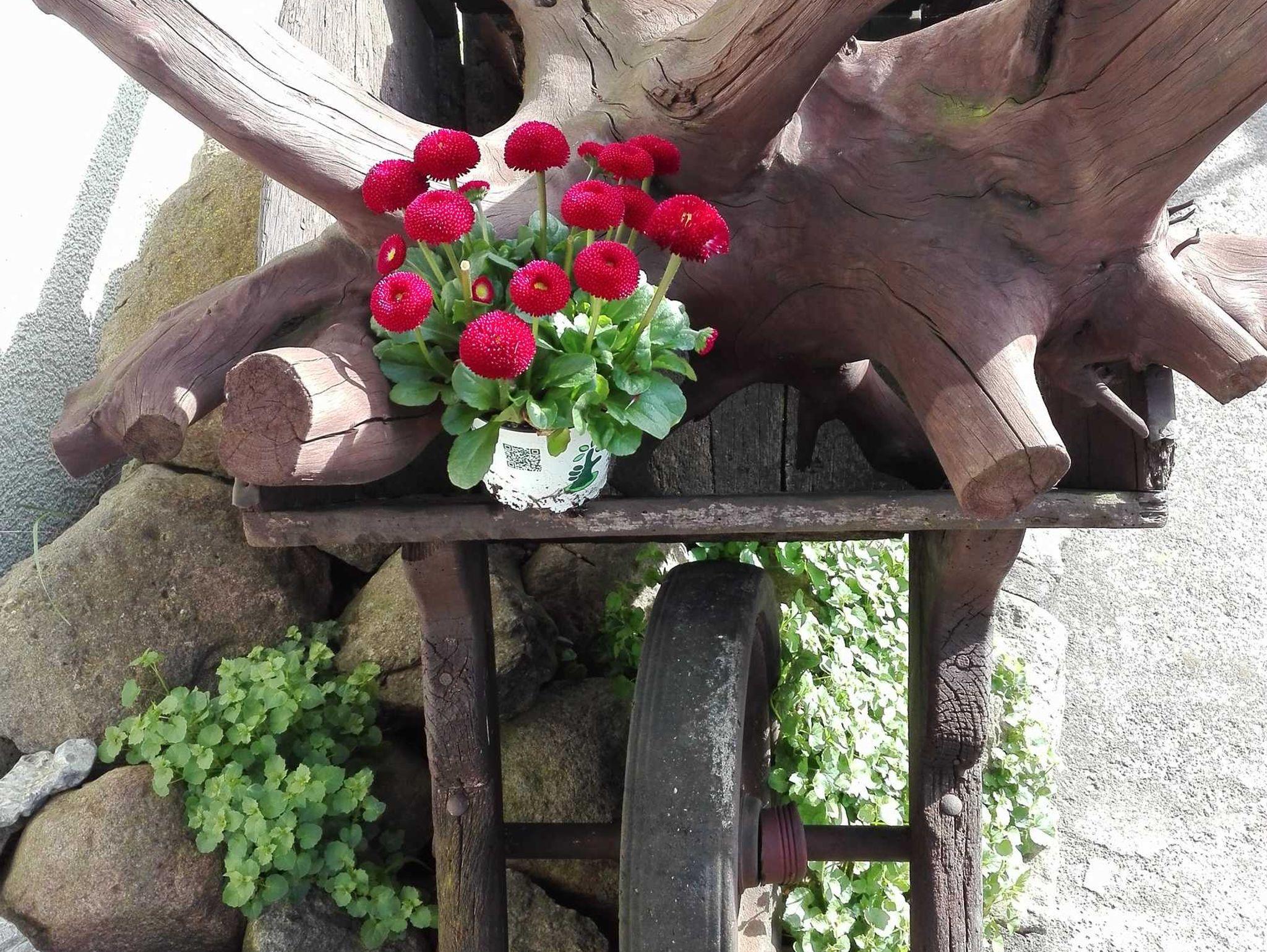 Kleine Ferienwohnung mit sep. Eingang auf eigenem Grundstück, Sitzen im Grünen (Gartenmöbel vorhanden) in ruhiger, aber doch zentraler Lage, Terrasse, ebenerdig. Kombination aus Wohn- und Schlafraum mit zwei Einzelbetten 90x200 (können auch zusammen gestellt werden als Doppelbett),