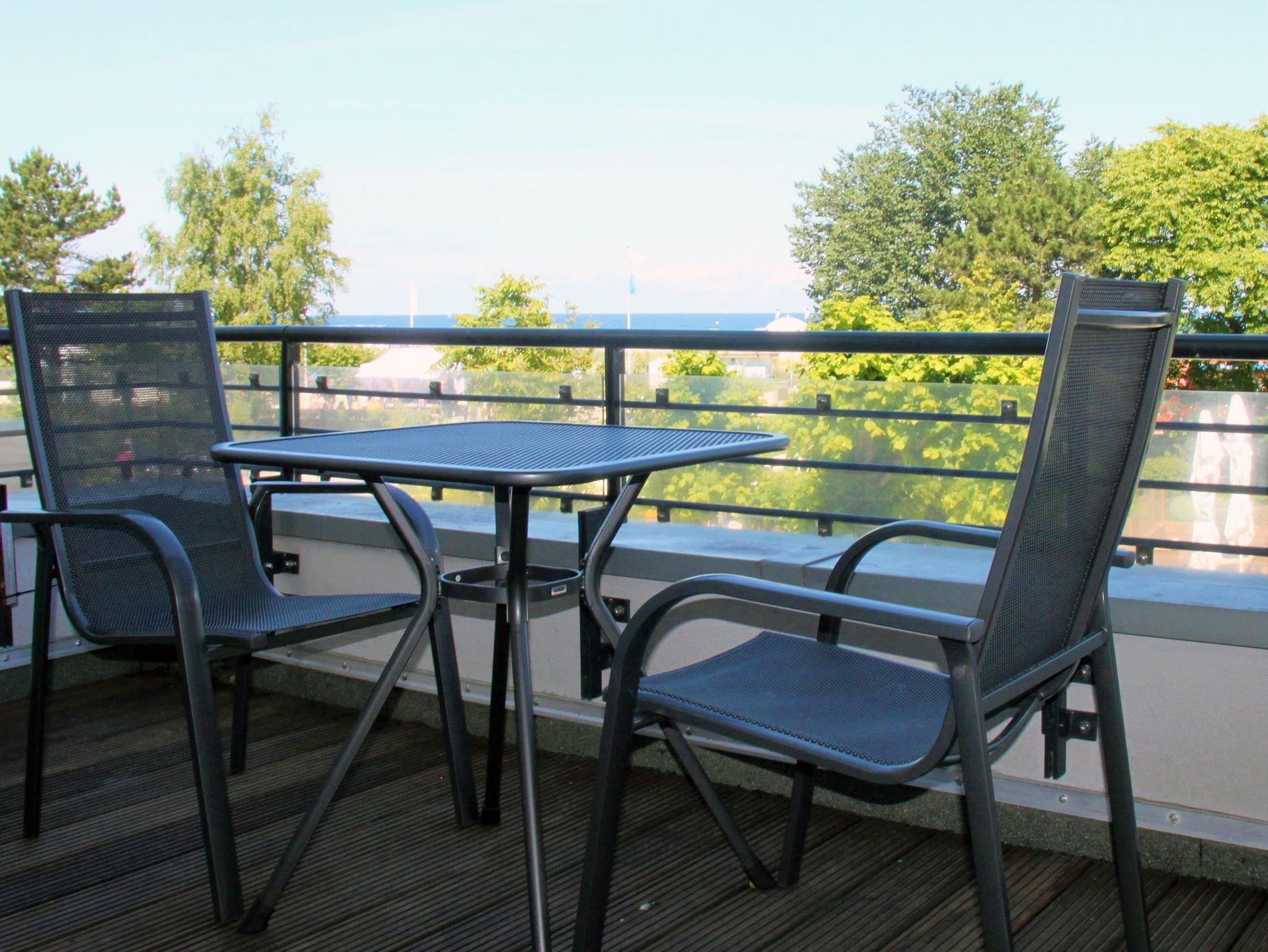 Ferienwohnung Seeblick mit Blick auf das Meer. Die Wohnung befindet sich nur 50 Meter liegend gegeünber vom Strand und ist in der begehrten Seestraße gelegen. Von der Balkon-Terrasse genießen Sie den wunderschönen Panoramablick auf das Meer.