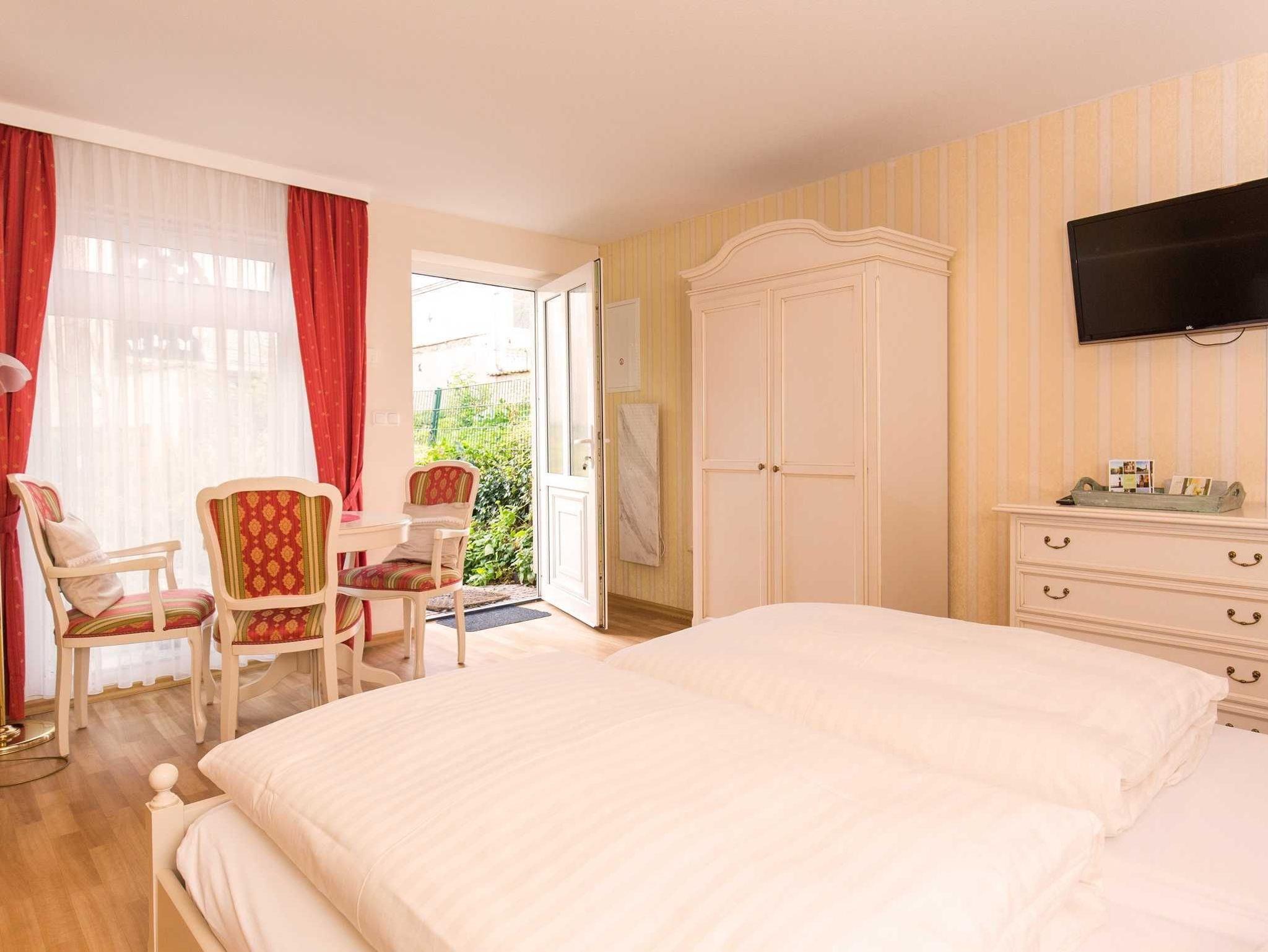 Die 23 m² große Ferienwohnung (ebenerdig) im begrünten Innenhof besteht aus einem kombinierten Wohn- / Schlafraum, TV, Küche und Dusche / WC. Sitzecke im Freien.
