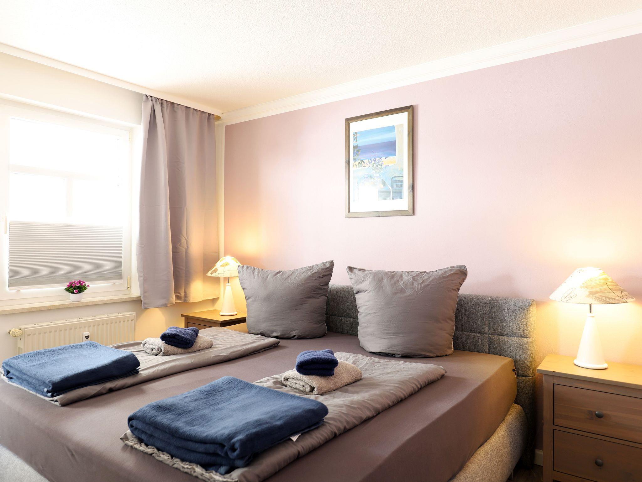 Die Ferienwohnung hat ein separates Schlafzimmer, ein separates Badezimmer mit Dusche/WC und einen großzügigen Wohn- und Sitzbereich mit Aufbettungsmöglichkeit.