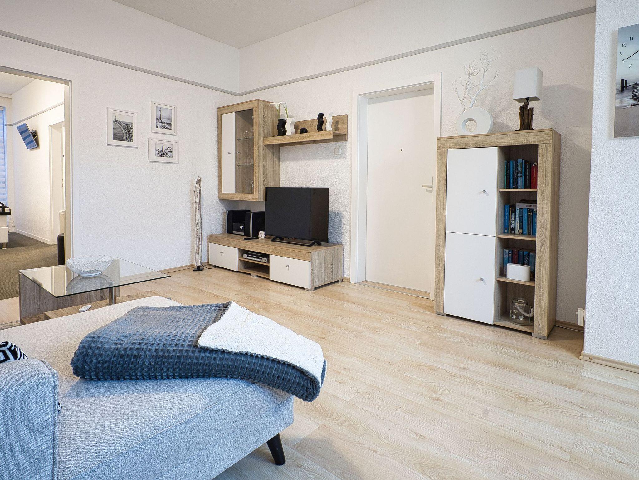 Unsere helle, moderne, 75 qm große Ferienwohnung „Ferienhaus der kurzen Wege bietet Ihnen diverse Möglichkeiten, Ihren Urlaub in optimaler Lage zu verbringen. Sie ist eine Oase der Ruhe mit schöner Terrasse zur Entspannung. Die Wohnung ist komfortabel, hell und hochwertig eingerichtet. Die Küchenzeile grenzt an den Wohn-/Essbereich und bietet Ihnen alles, was sie benötigen. Hier finden sie: Ceranfeld , Geschirrspülmaschine, Wasserkocher, Toaster, Kaffeemaschine, Kombi-Mikrowelle, Delonghi Nespresso-Maschine und natürlich genügend Geschirr und Besteck. Der Esstisch lädt schon am Morgen zum gemütlichen Frühstück ein. Ein sep. Schlafzimmer ist mit einem Doppelbett und rückengerechten Wohlfühlmatratzen, einem geräumigen Kleiderschrank und einem zweiten Flatscreen-TV ausgestattet. Im Wohnzimmer befindet sich eine moderne Sofalandschaft. Nach einem langen Strandtag finden Sie hier Erholung und können die Beine hochlegen und sich mit dem großen Flatscreen-TV wie zu Hause fühlen. Vom Schlafzimmer aus gelangen Sie auf die Terrasse mit dem idyllischen Garten (Alleinnutzung). Ein großes Bad mit Badewanne und Dusche sorgt für den richtigen Erholungs- und Wellnessfaktor. Waschmaschine und elektrischer Wäschetrockner sind vorhanden. Im Haushaltsraum finden sie Bügelbrett, Bügeleisen, Standwäschetrockner und vieles mehr. WLAN können sie bei uns kostenlos nutzen.