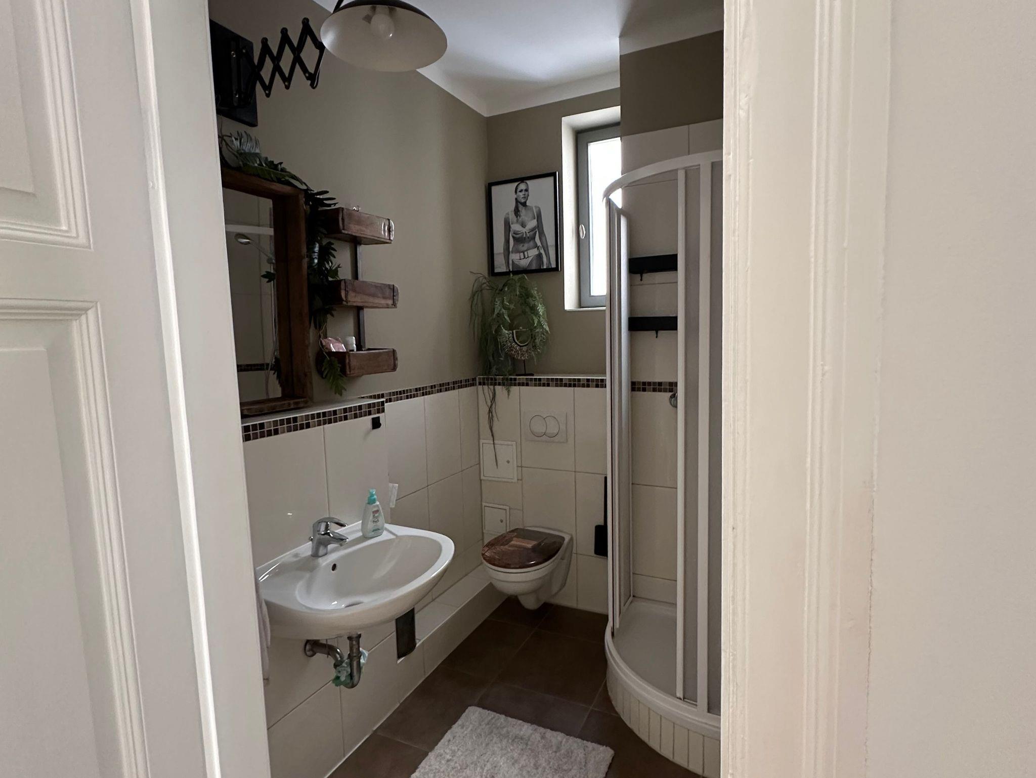 Erfrischung: Ein modernes Badezimmer mit Dusche/WC.