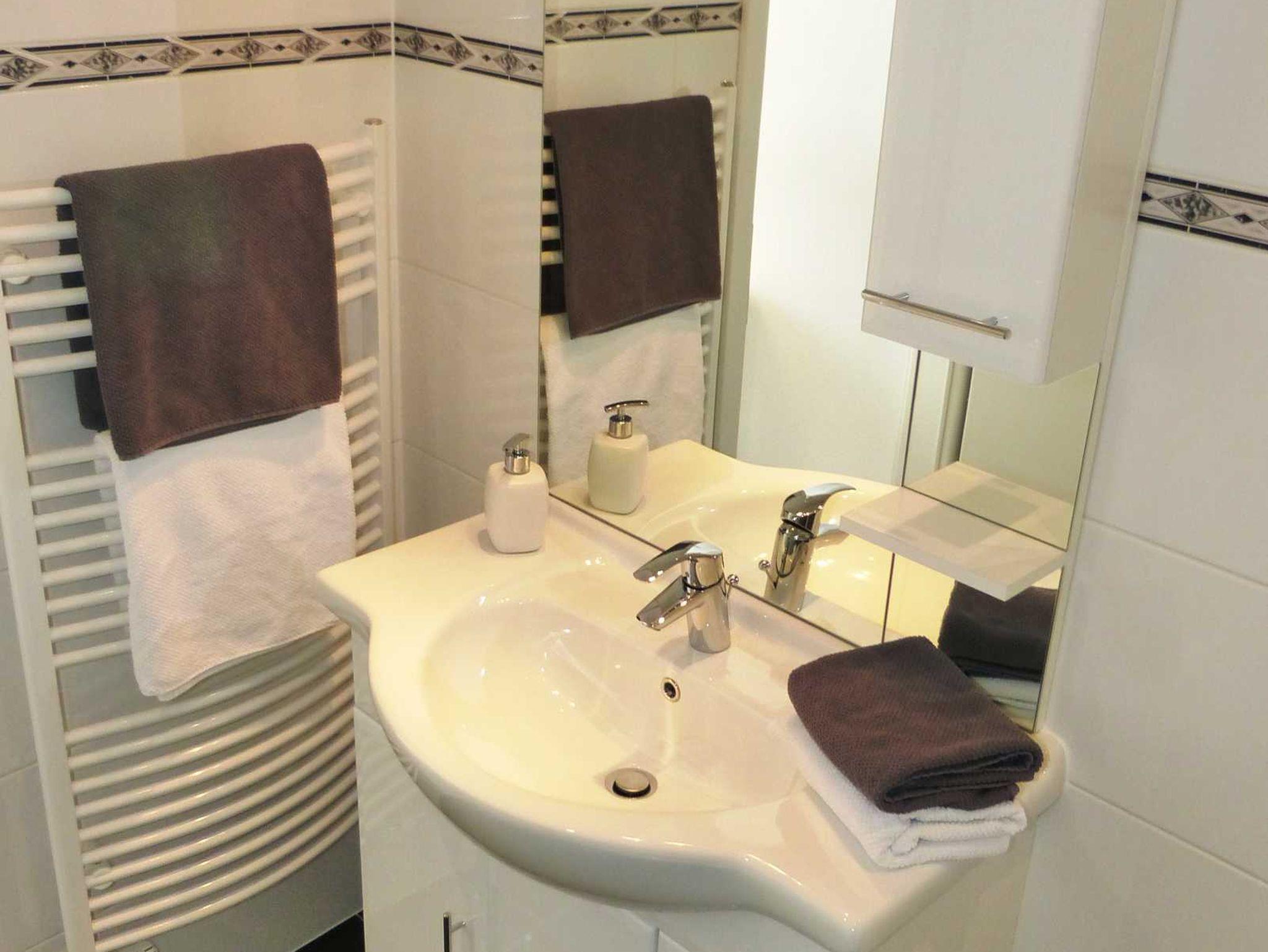 Die Residenz bietet Ihnen einen großzügigen Wohn- und Essbereich mit offener Küchenzeile, Balkon und Aussicht zum Kirchenplatz. Auf dem Sofa kann aufgebettet werden. Zudem gibt es ein Schlafzimmer mit Doppelbett und eigenem Badezimmer mit Dusche und WC sowie ein zweites, separates Schlafzimmer mit Doppelbett und ein zweites, ebenfalls separates Badezimmer.