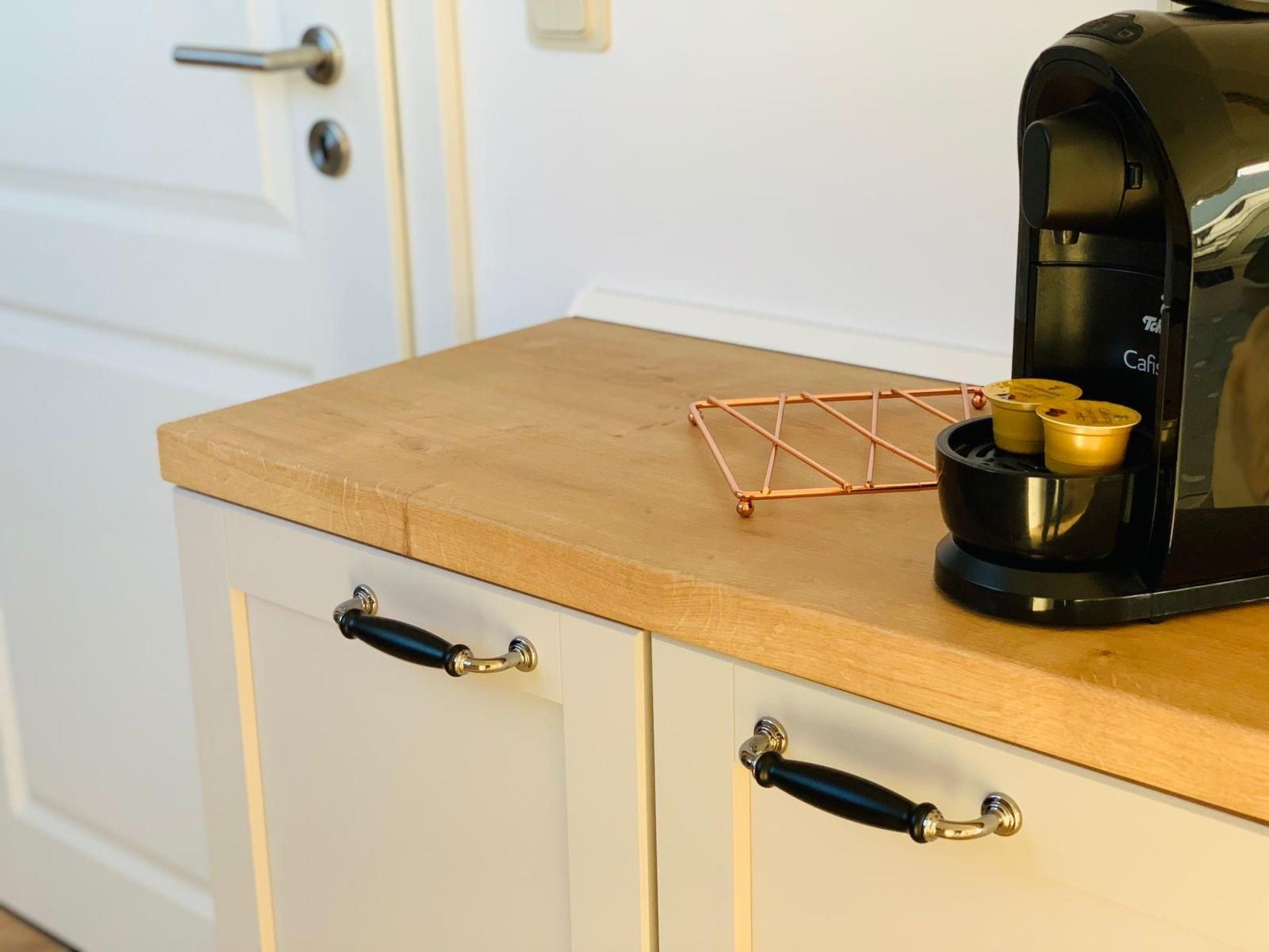 The kitchen is equipped with an induction hob, oven, coffee machine (Tchibo capsules), kettle, toaster, crockery, cutlery, glasses, cups and dishwasher.