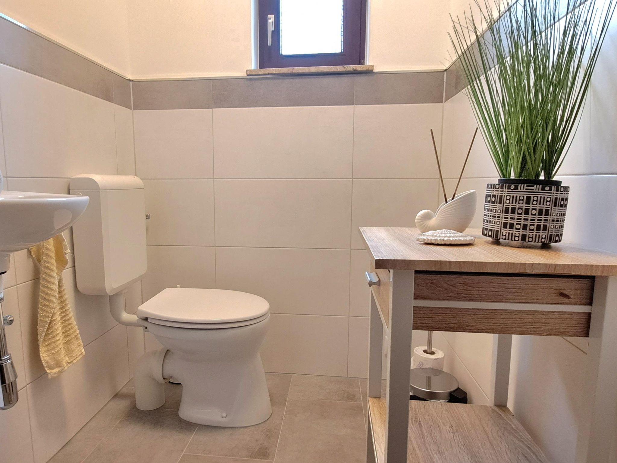 Unsere Ferienwohnung Engels verfügt neben dem Badezimmer mit ebenerdiger Dusche auch über ein Gäste-WC, somit haben die Gäste, die in dem zweiten Schlafzimmer übernachten, ein eigenes WC und müssen nicht durch das andere Schlafzimmer um die Toilette zu nutzen.