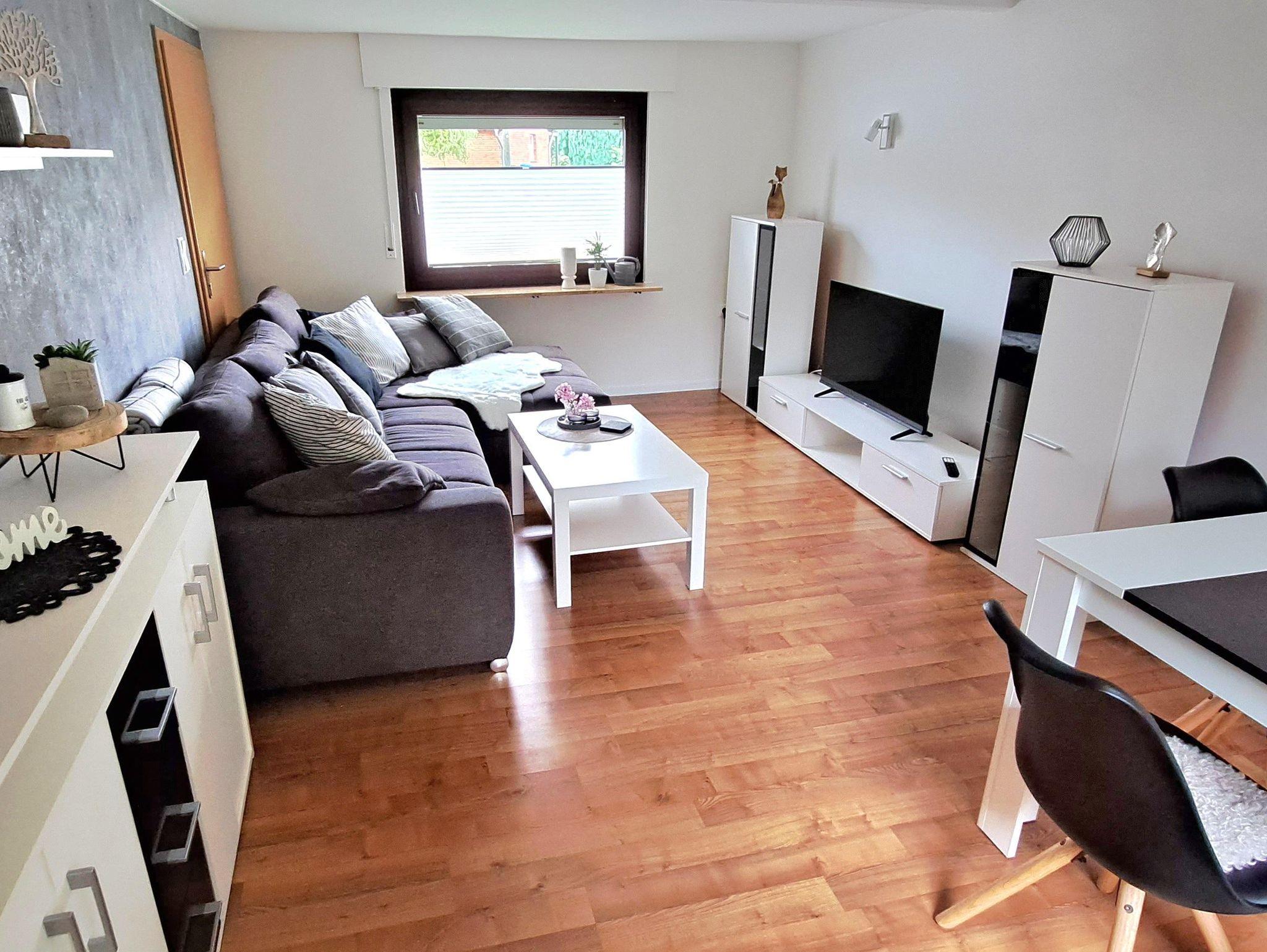 • Gemütliches Wohnzimmer mit Essecke für 4 Personen und großer Couch