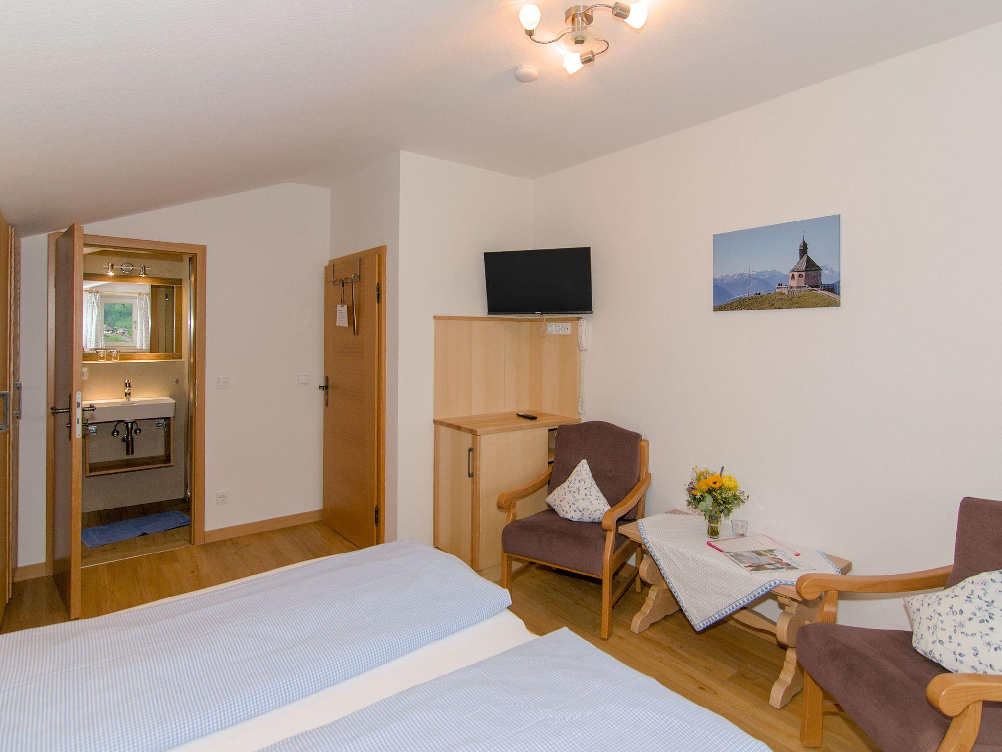 Das Doppelzimmer ist mit Dusche/WC, Balkon nach Osten, TV, Telefon, Radio und Safe ausgestattet.