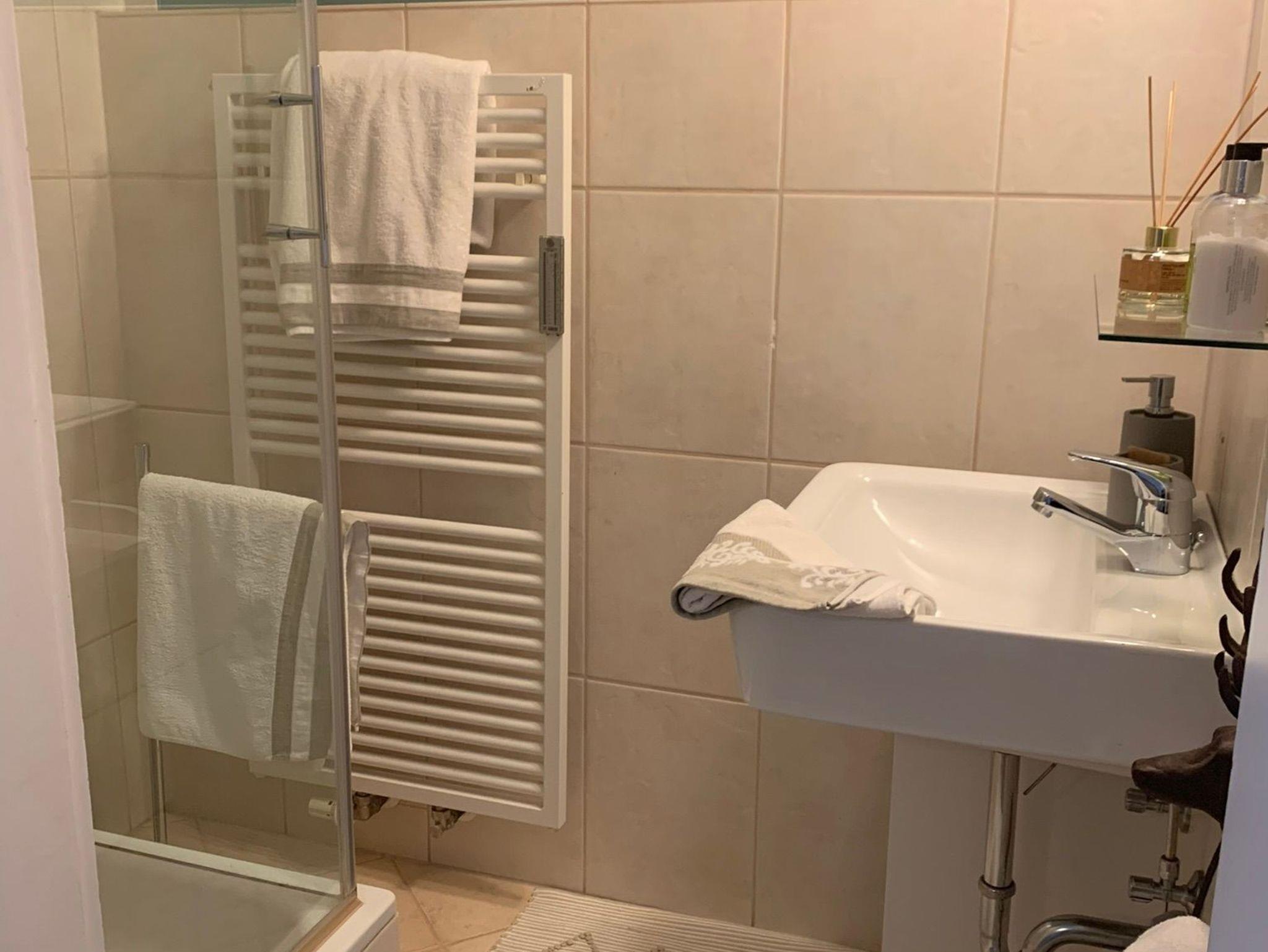 Die hübsche Wohnung von etwa 45 m2 verfügt über 1 Wohn-/Esszimmer, ein Schlafzimmer, ein Bad mit Dusche und ein separates WC.