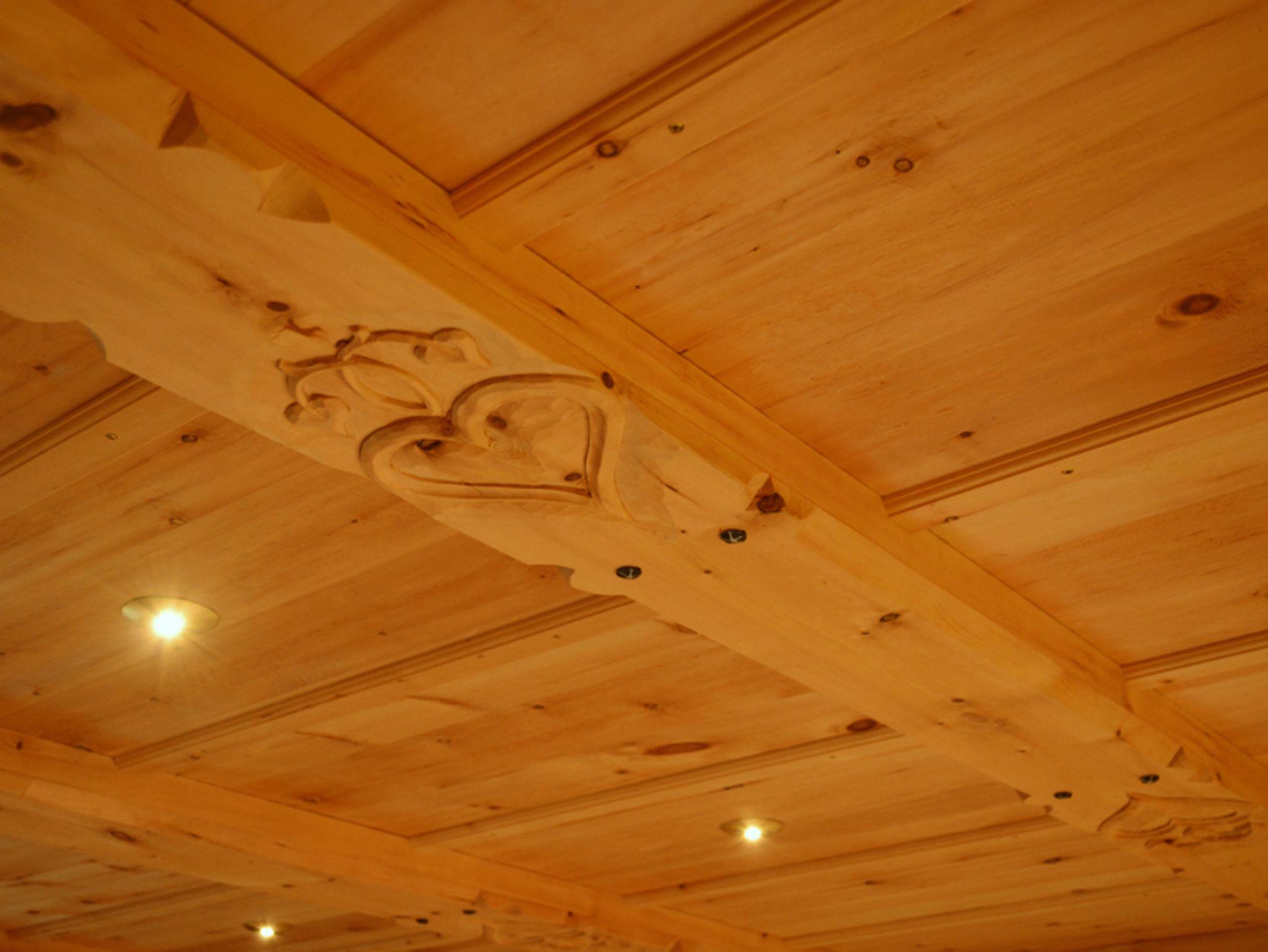 Der große Balkon hat eine Ost- und eine Südseite mit Blick auf den Wallberg. Zirbelwände und Decke sorgen für für tiefen Schlaf.