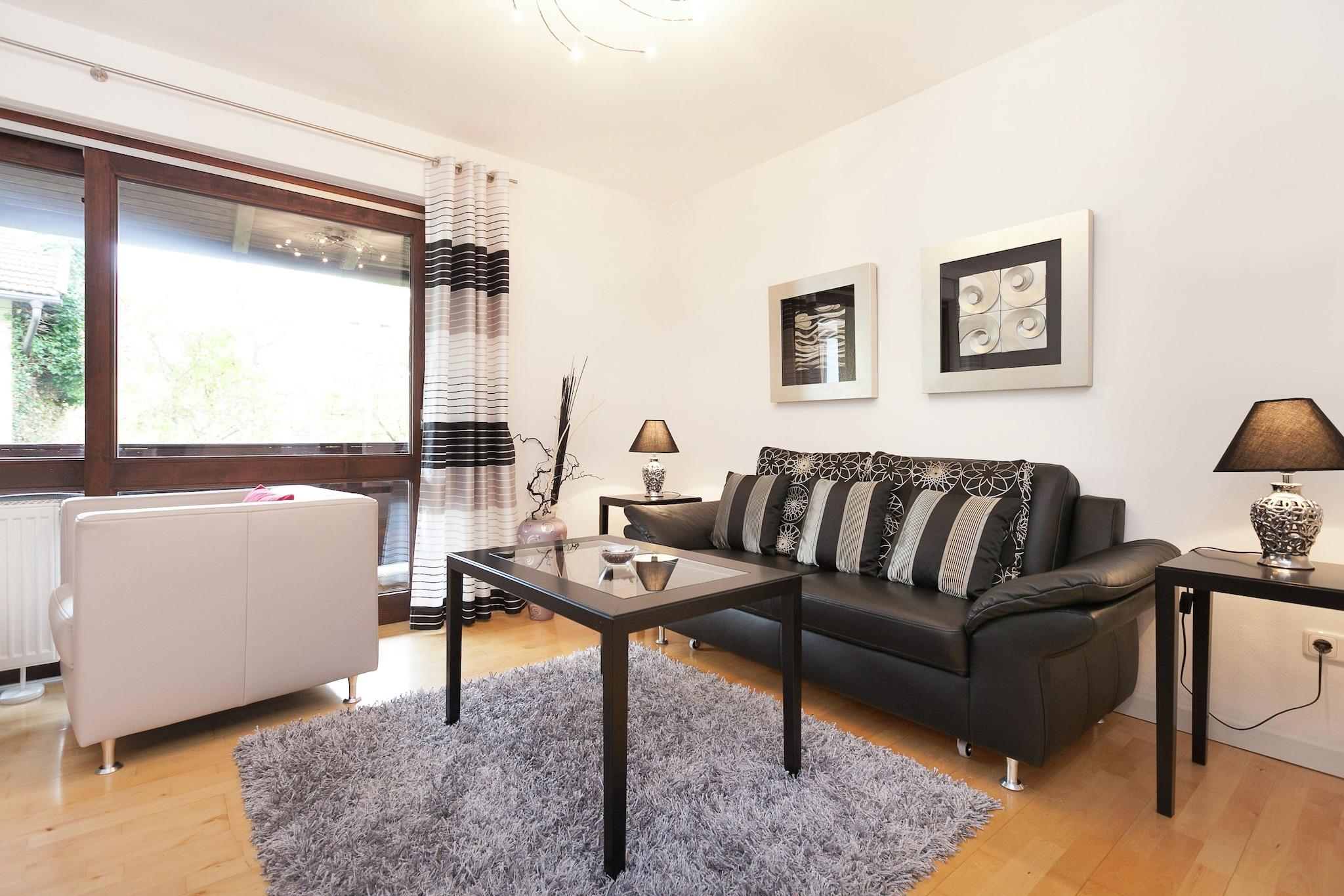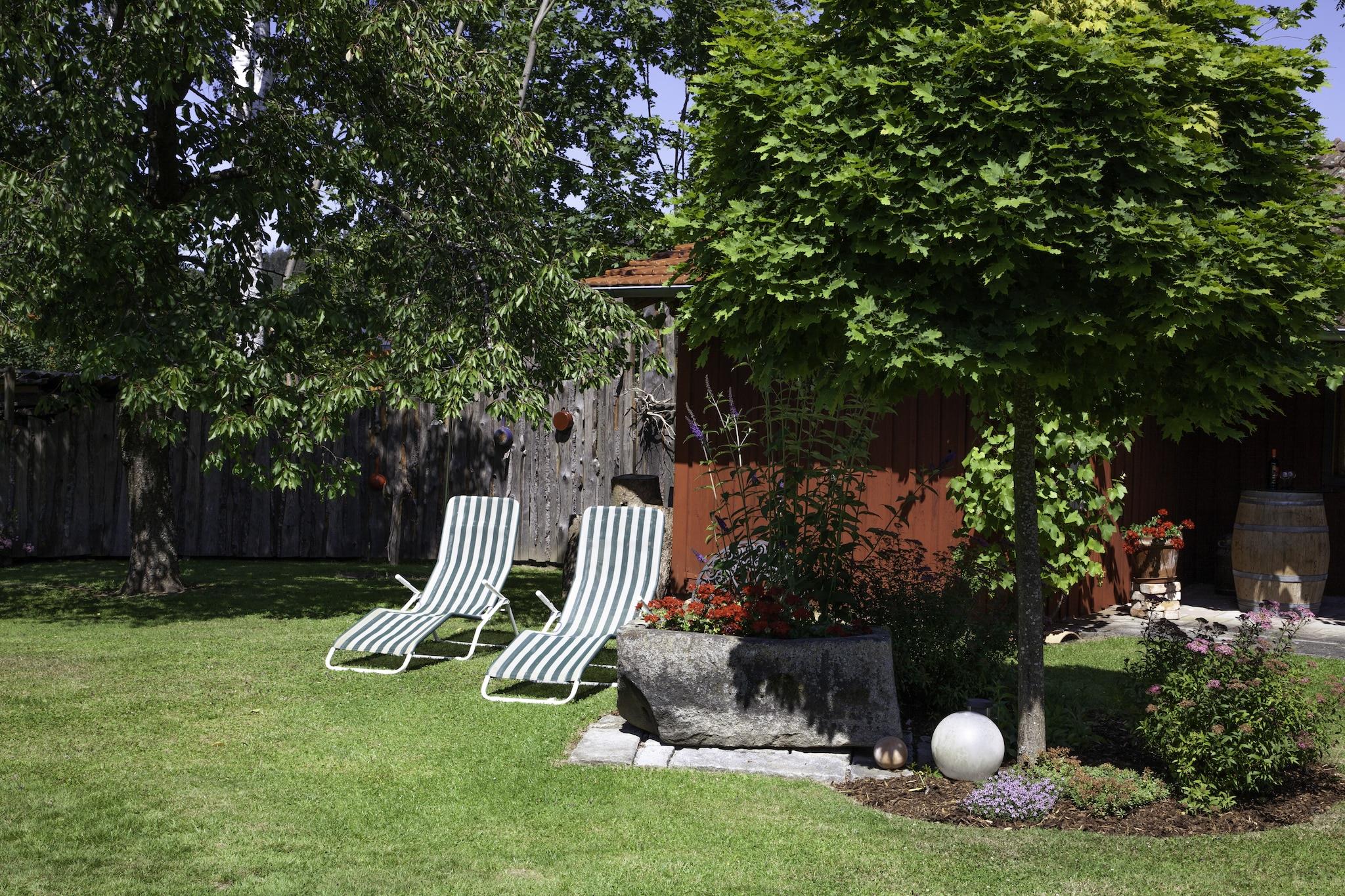 Denne koselige leiligheten i 2. etasje i Ruhmannsfelden tilbyr et fredelig opphold i hjertet av den bayerske skogen. Den er ideell for par eller små familier, og har en romslig stue/spisestue med satellitt-TV, en enkel sovesofa og tilgang til en privat balkong. Det åpne kjøkkenet er utstyrt med keramisk komfyr, stekeovn og kjøleskap med fryser, mens soverommet har en komfortabel dobbeltseng. Et moderne bad med gulvvarme og infrarød badstue gir et snev av luksus. Gjestene kan nyte et felles oppvarmet svømmebasseng (åpent fra april til oktober), en kullgrill, hagemøbler og en terrasse for utendørs avslapning. Den delte hagen er perfekt for å slappe av, og fasiliteter som barnestol, parkering og lagring sørger for bekvemmelighet. Enten du bader i badstuen eller nyter en rolig kveld på balkongen, blander denne leiligheten komfort med sjarm. I nærheten kan du utforske den naturskjønne Hirschenstein-toppen med sitt utsiktstårn, eller gå de skogkledde stiene Predigtstuhl og Rauher Kulm. For bespisning kan du prøve Pizzeria Bellini for italienske favoritter, Taverna Mythos for greske spesialiteter, eller Carolas Bistro for uformelle matbiter.
