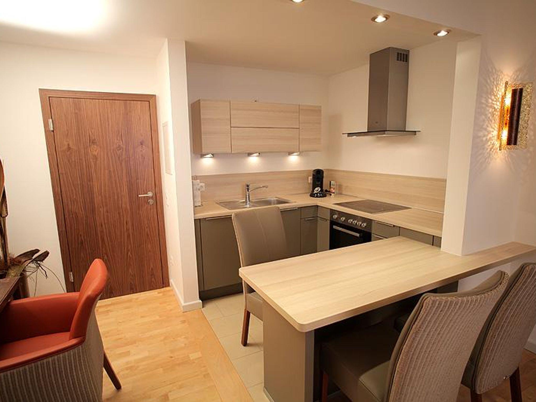 Unser neu gestaltetes Appartement - Harmonie bietet Ihnen eine moderne Küche, ausgestattet mit Kühlschrank samt Gefrierfach, einem funktionellen E-Herd mit Cerankochfeld, einer Edelstahl-Dunstesse und einer angesetzten, raumteilenden Esstheke. Die hochwertige Qualität und das ansprechende Design der Küche setzen sich auch im Wohnbereich, Schlafraum mit Ankleide und dem Bad fort. Handgefertigte, filigrane Echtholzmöbel, ein Relaxsessel aus feinstem Leder, ein kuscheliges Sofa (ist umfunktionierbar zum Zusatzbett ) sowie Betten die höchsten Schlafkomfort bieten, ergänzen sich zu einem luxuriösen und behaglichen Ambiente. Designleuchten und liebevolle Deko runden das Gesamtbild ab und verleihen dem Appartement - Harmonie seinen ganz besonderen Charme. Lassen Sie sich verzaubern ...