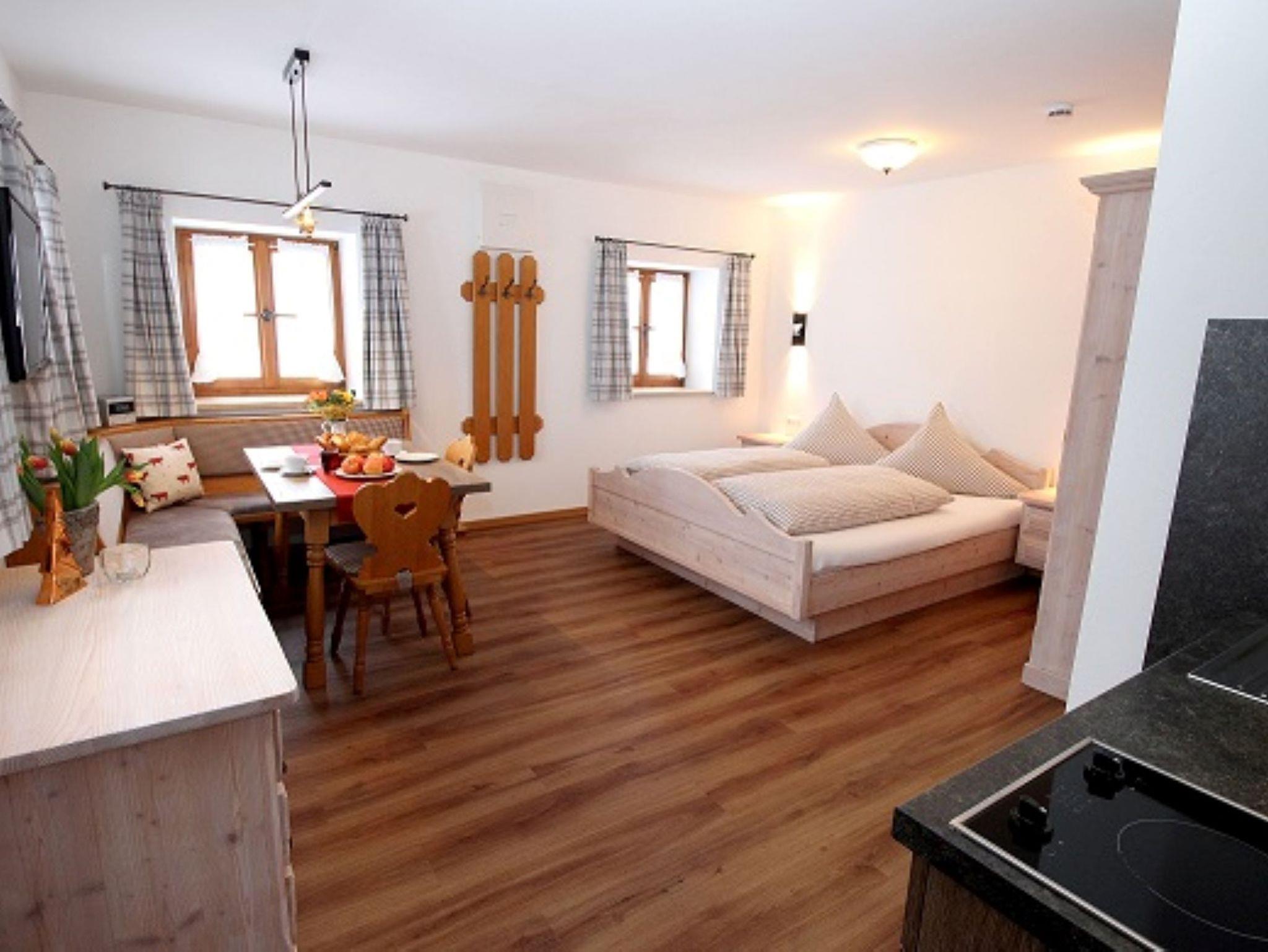 Schifterhof Ruhpolding, Ferienhaus am Schifterhof 60qm, Balk., Kochni., 2 Schlafz., Wohnzi., 4 P.