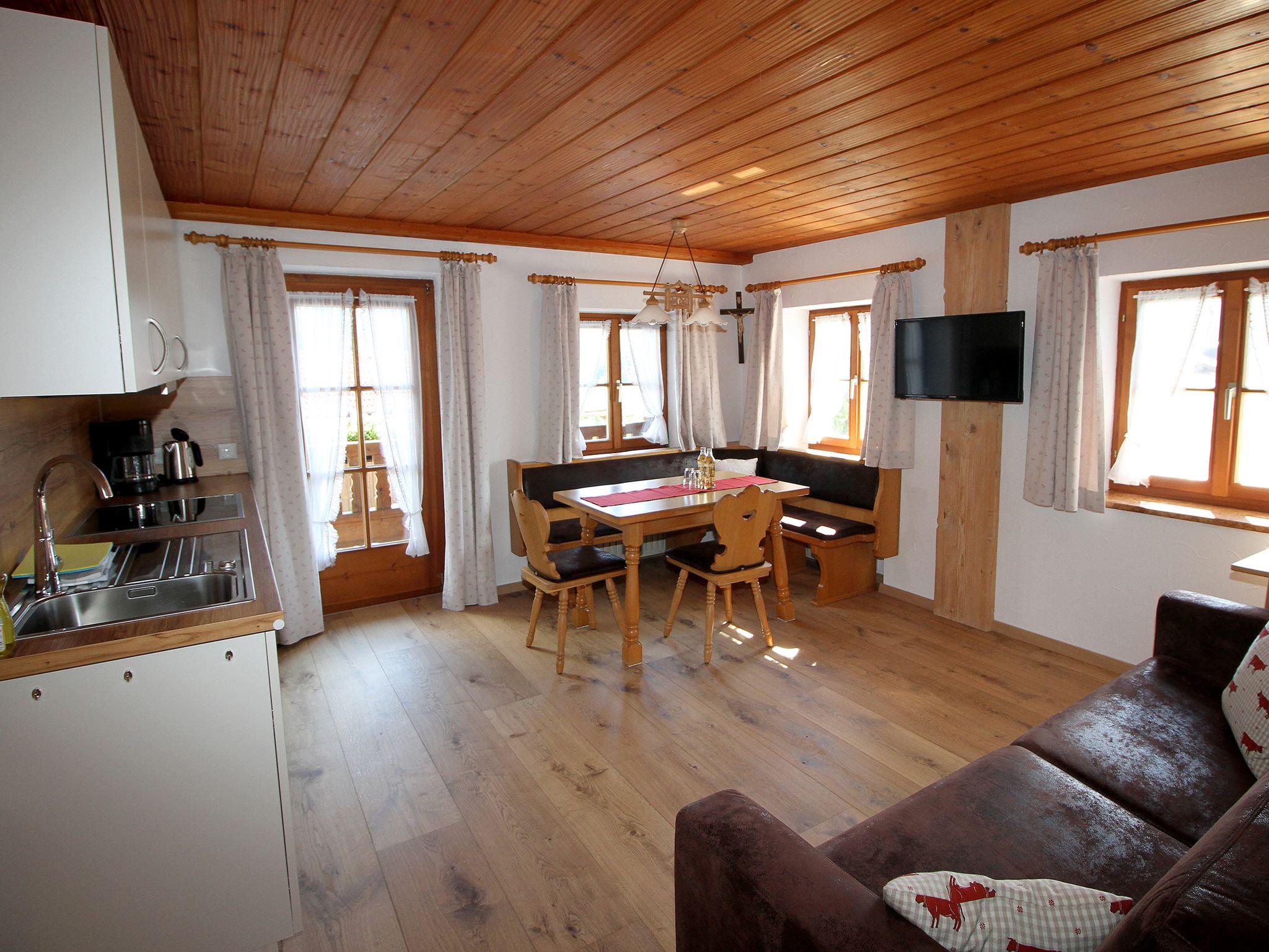 Schifterhof Ruhpolding, Ferienwohnung Bauernhof Südbalkon 36qm, Kochni., 1 Schlaf- und 1 Wohnzimmer