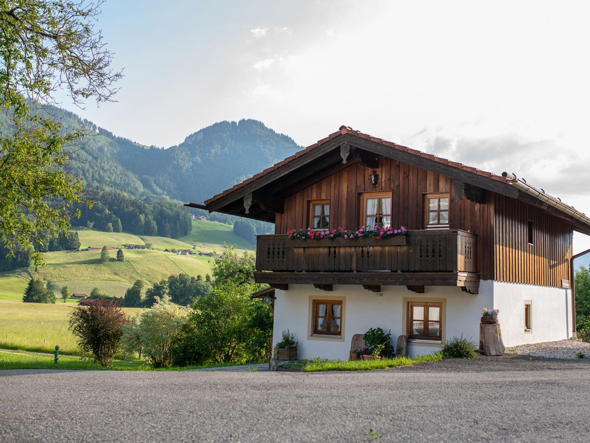 Unser Bio-Bauernhof liegt ruhig, südlich der Ortsmitte von Ruhpolding mit freiem Blick auf Wiesen und Berge der Voralpen, inmitten intakter Natur.