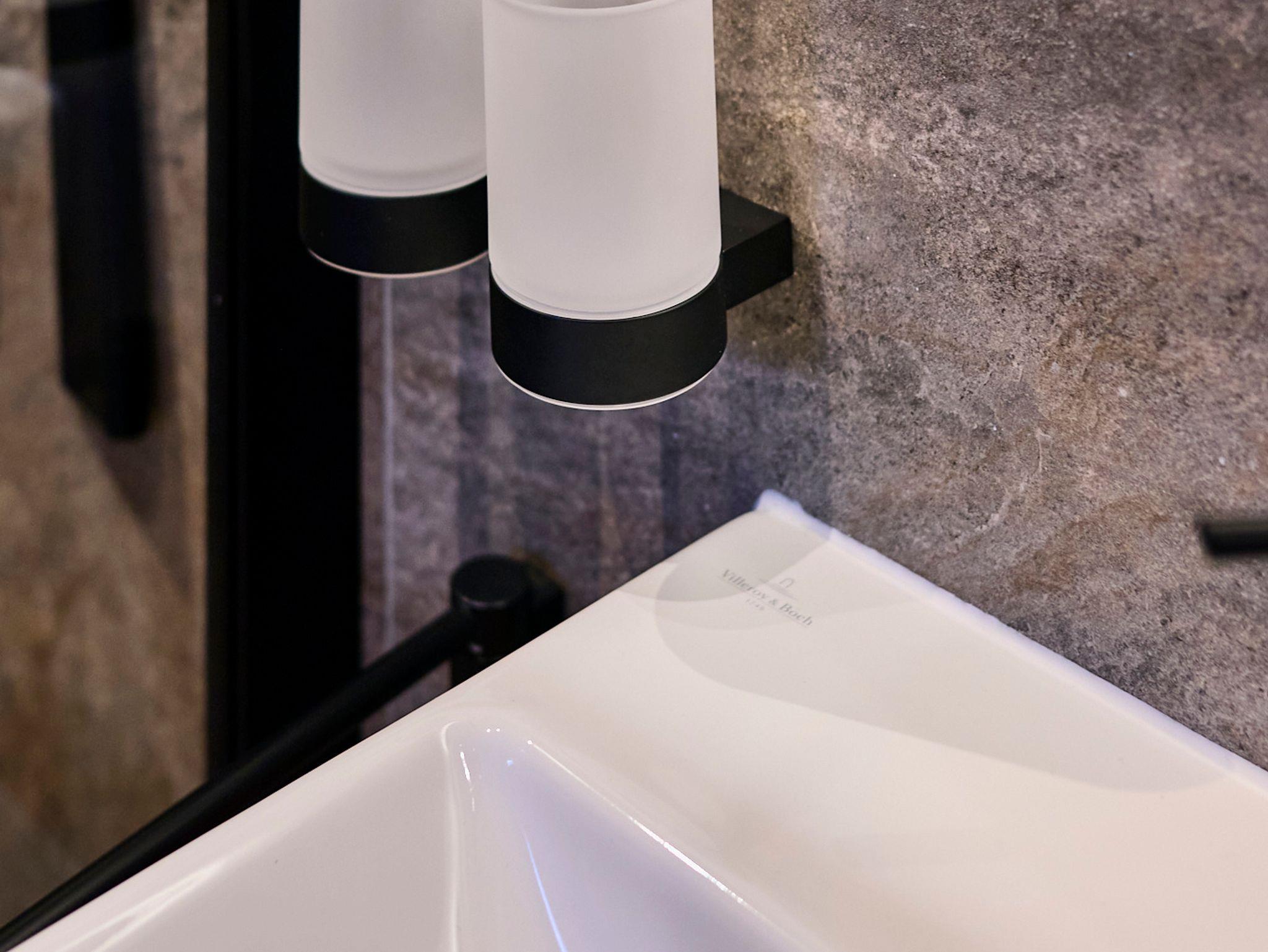 Die ebenerdige Felsen-Dusche bietet einen ruhigen Moment der Entspannung. Das sanfte Wasser sorgt für Erfrischung und lädt dazu ein, den Alltag hinter sich zu lassen und einfach zu genießen. Ein kleines Stück Wellness für zwischendurch.