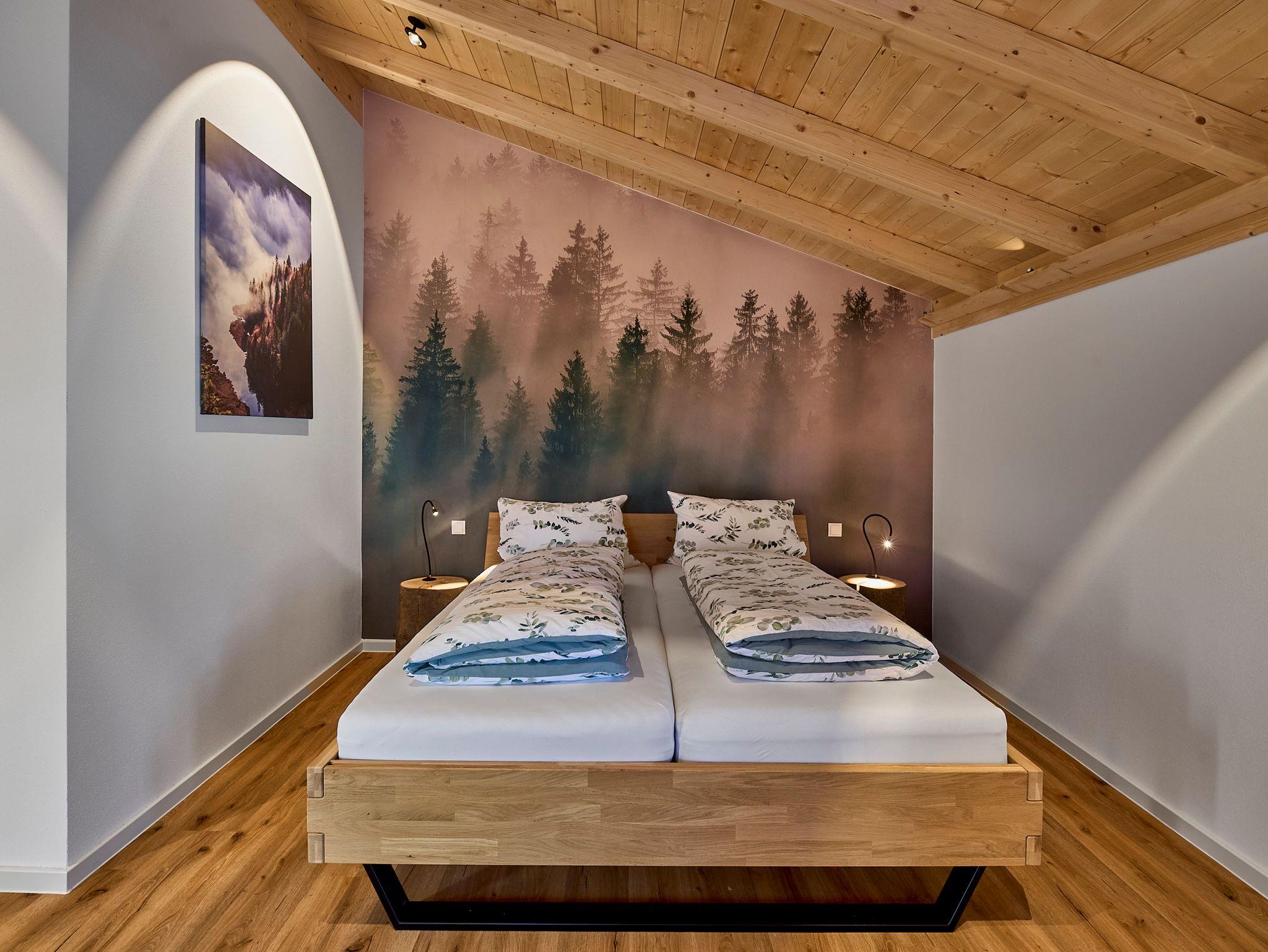 Eingehüllt in den Nebel der Morgendämmerung. Der magische Sonnenaufgang taucht die Welt in goldenes Licht, während die Nacht sanft verweht. In diesem Raum wird Ruhe zum Erlebnis, wo der Schlaf tief und erholsam wie die Natur selbst ist.