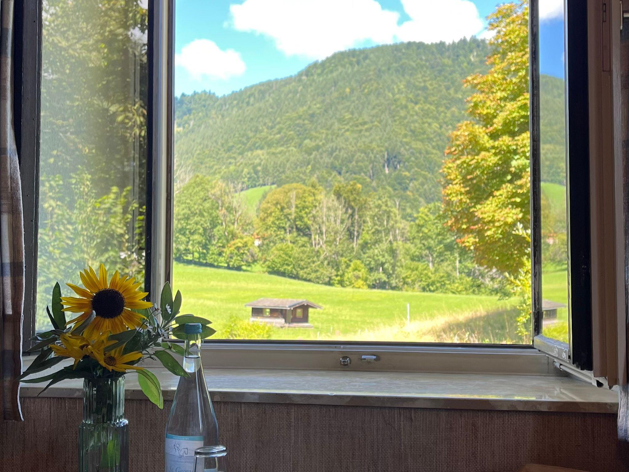Eine großzügige Sonnenterrasse sowie eine Liegewiese mit traumhafter Aussicht laden dazu ein, die Seele baumeln zu lassen. Ein idyllischer Fußweg führt Sie direkt ins nahegelegene Dorf.