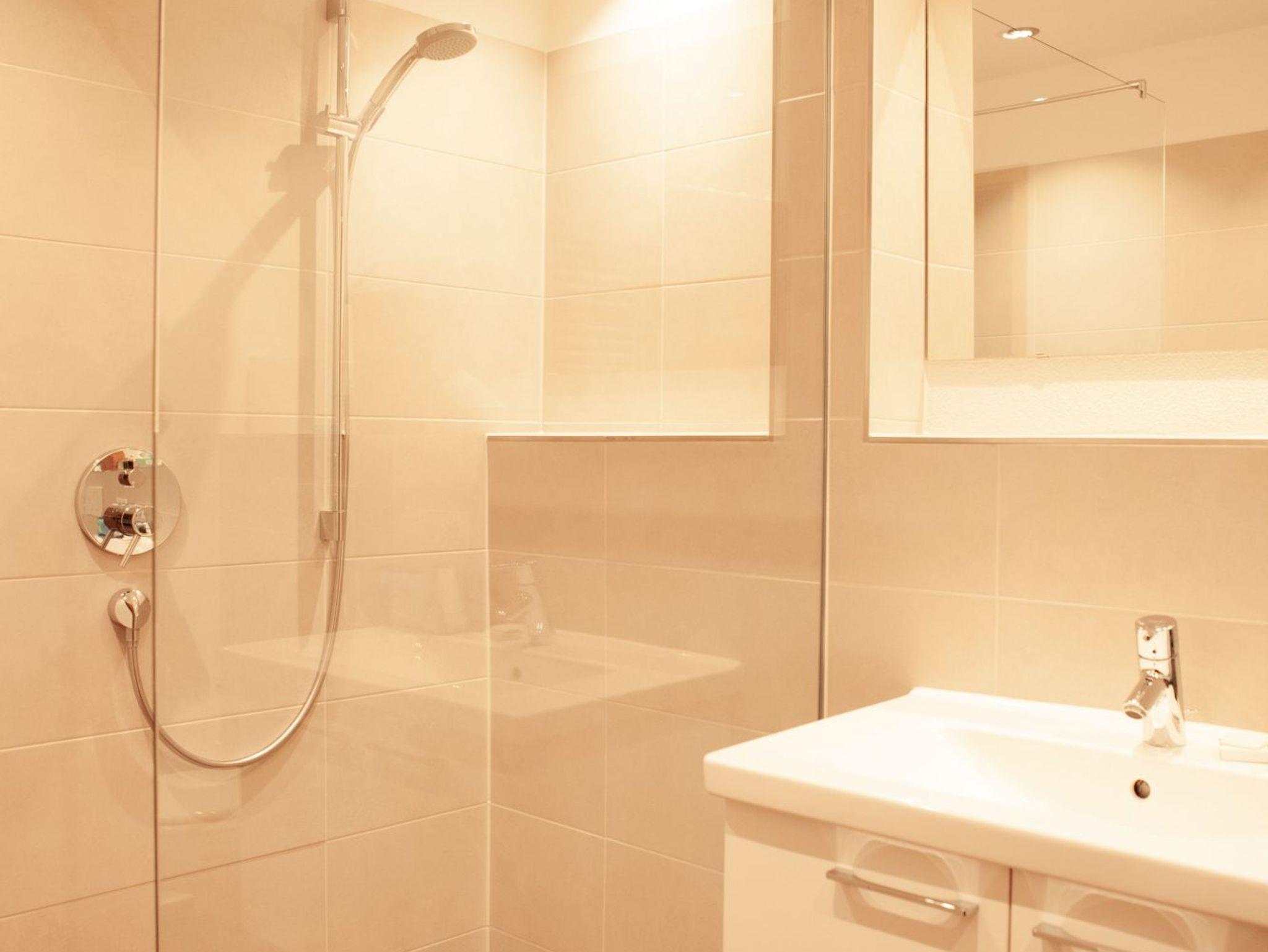 Diese komfortable und geschmackvoll eingerichtete Ferienwohnung befindet sich im Erdgeschoss in einem Haus mit insgesamt 8 Ferienwohnungen. Auf ca 70 qm Wohnfläche finden Sie alles was zu einem schönen Urlaub gehört. Ihre Wohnung verfügt über einen geschmackvoll eingerichteten Wohnraum für gemütliche Abende, vom Wohnzimmer aus haben Sie einen direkten Zugang zu Ihrer eigenen Terrasse, eine Wohnküche mit einer Küchenzeile und Essraum, ein separates Eltern-Schlafzimmer mit einem Doppelbett (180 x 200cm) und einem 3-türigen Kleiderschrank, auch vom Schlafzimmer aus haben Sie einen direkten Zugang zu Ihrer eigenen Terrasse, ein zweites Schlafzimmer mit einem Stockbett (90 x 200cm) und ein Badezimmer mit einem Badewanne mit Dusche und WC sowie eine grosse Terrasse mit Westblick, komfortablen Gartenmöbeln und Sonnenschirm.