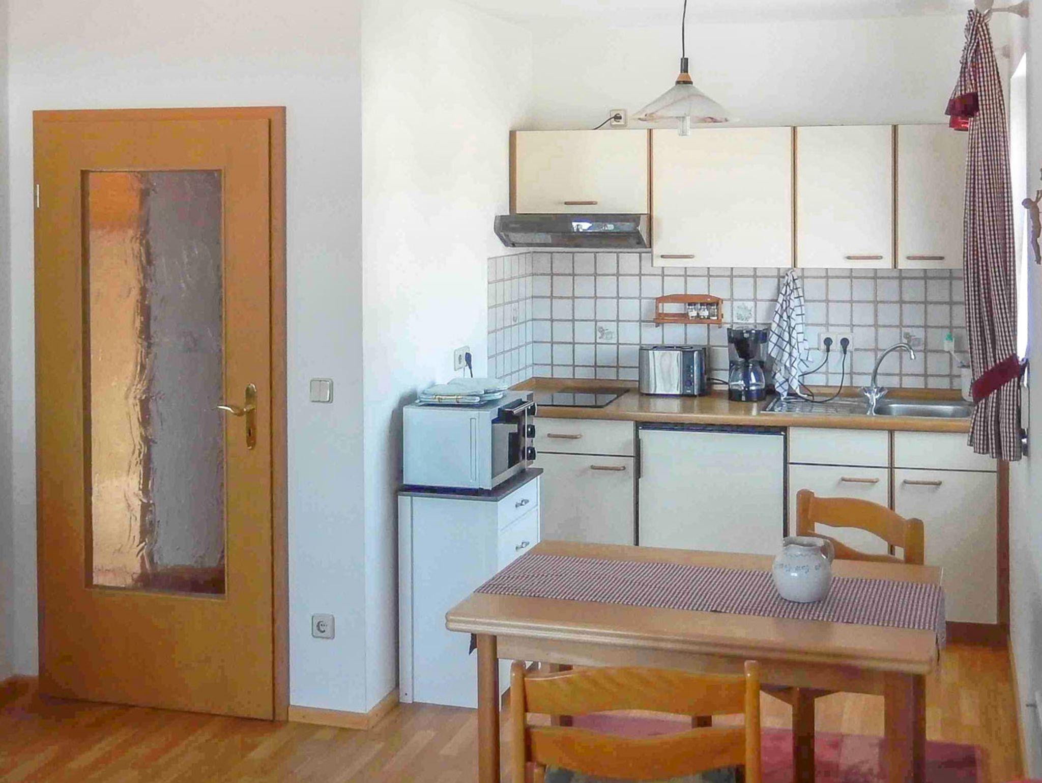 Die lichtdurchflutete 2-Zimmerwohnung bietet idealen Wohnraum für 4 Personen (ein Babyreisebett ist auf Anfrage vorhanden). Der gemütliche Essbereich lädt Sie schon am Morgen zum Frühstück ein – vielleicht nach einem kleinen Spaziergang, verbunden mit dem Einkauf frischer Köstlichkeiten beim Bäcker im Ort. Die gut ausgestattete Küche bietet ihnen dann die Möglichkeit der Zubereitung, sowohl eines frischen Kaffees als auch warme Speisen oder kleine Snacks. Dafür steht Ihnen neben dem Herd auch eine Mikrowelle zur Verfügung. Genießen Sie nach einer ruhigen Nacht ein Bad oder eine Dusche im großräumigen Badezimmer. Im Wohnbereich bieten Ihnen TV und Internet umfangreiche Unterhaltung. Wohn-Schlafraum mit Schlafcouch für 2 Personen. Der geschützte Balkon bietet einen weiten Ausblick in die Natur und lädt zum Verweilen ein. Mit einem Glas Wein z.B. könnte man zum Ausklang, den erlebnisreichen Tag, Revue passieren lassen.